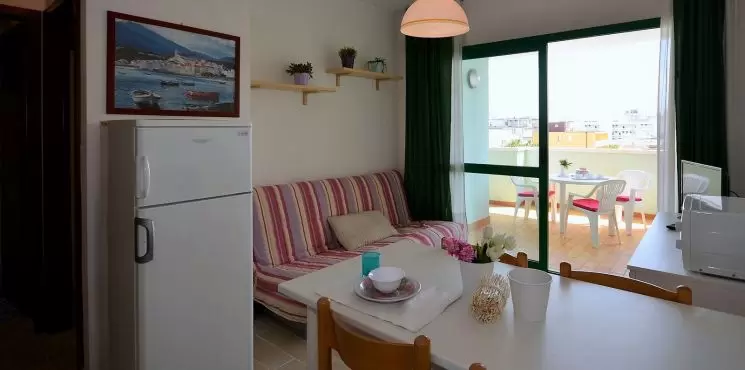 B-5 fő részére: nappali kétszemélyes kanapéval, konyhasarok, hálószoba franciaággyal és 1 ággyal, fürdőszoba, erkély. Tv, széf, mikró, légkondicionálás.