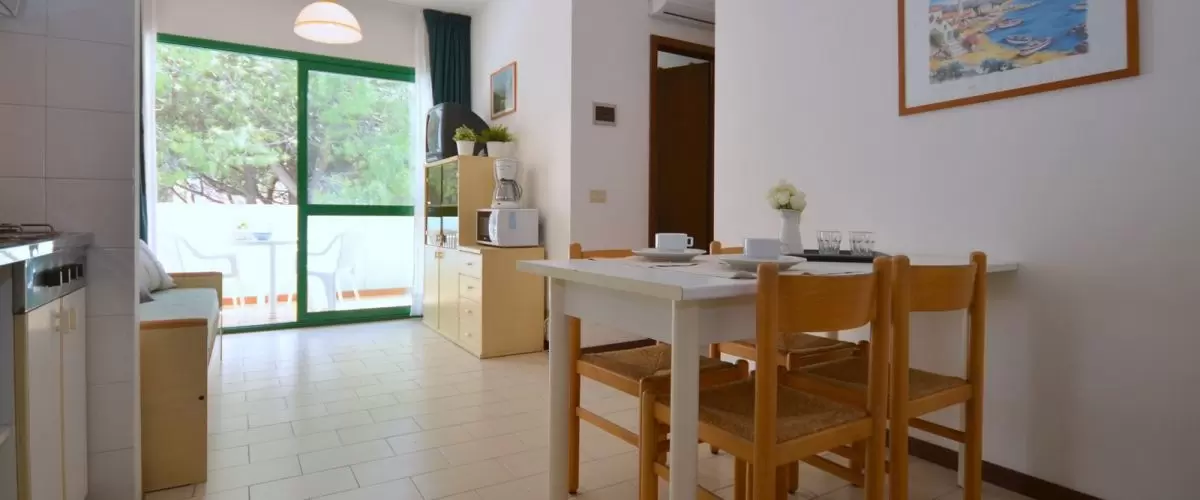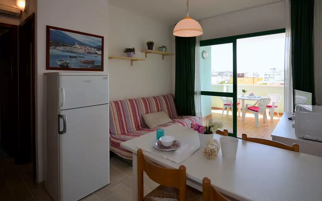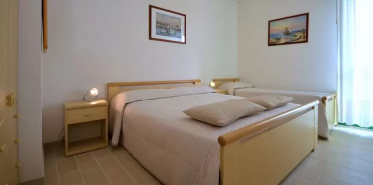 C-6 főre: nappali kétszemélyes kanapéval, konyhasarok, hálószoba franciaággyal, hálószoba emeletes ággyal, fürdőszoba, erkély. Tv, széf, mikró, légkondicionálás.