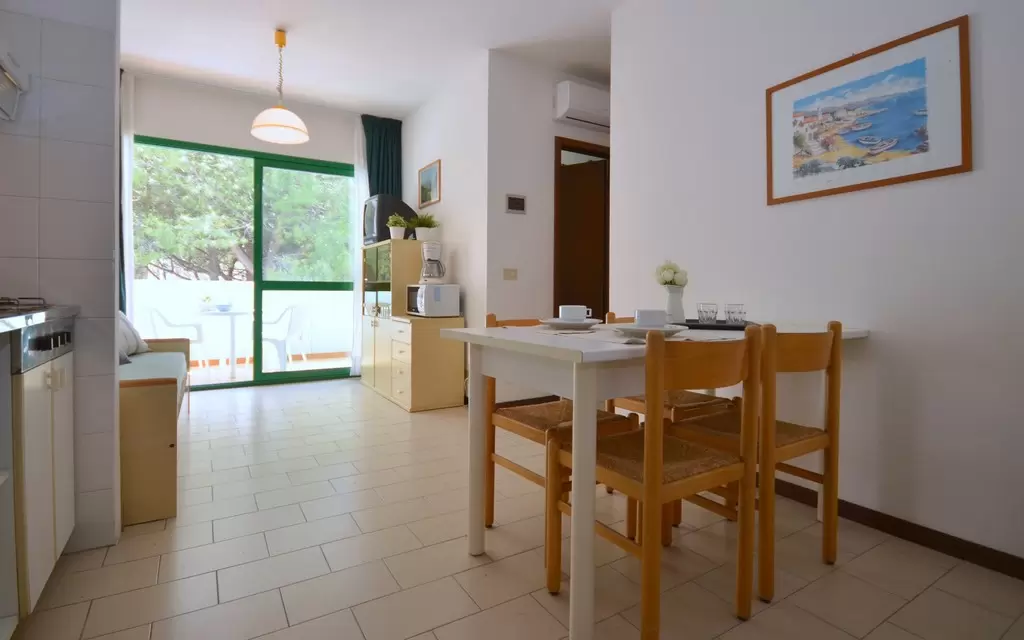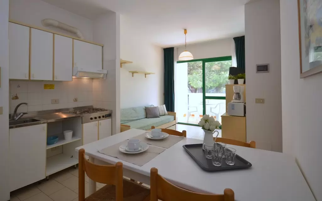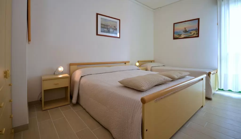 C1-6 főre: nappali kétszemélyes kanapéval, konyhasarok, hálószoba franciaággyal, hálószoba emeletes ággyal, fürdőszoba, terasz. Tv, széf, mikró, légkondicionálás, mosógép, mosogatógép. Felújított apartman.