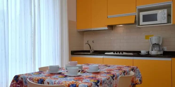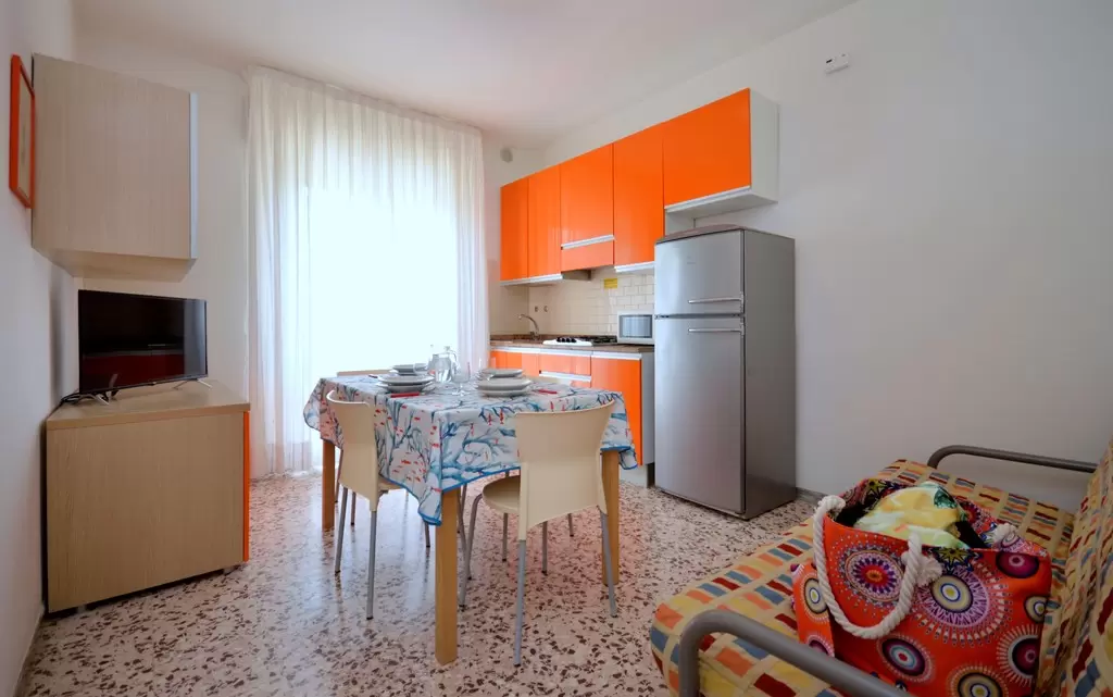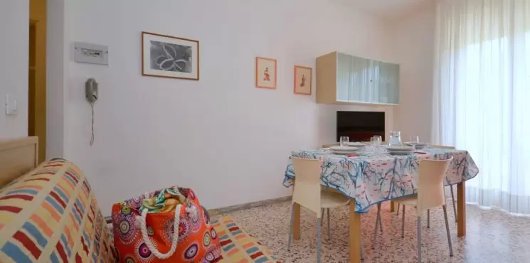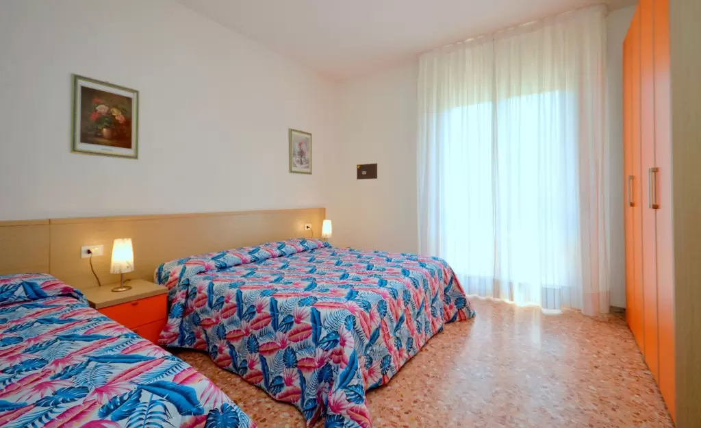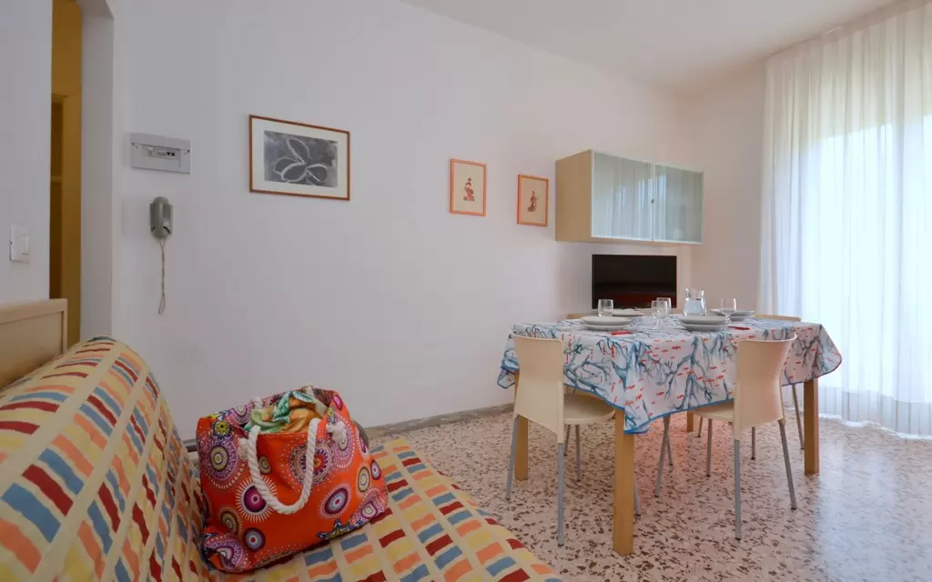 Tizenkét apartman három emeletre elosztva, lifttel, Bibione központjában, a sétálóutca mentén, mindössze 250 m-re a tengertől. ABibione Thermaegyógyfürdő gyalog mindössze 10 perc, kerékpárral pedig 5 perc alatt elérhető. Ideális választás azoknak, akik szeretik Bibione pezsgő központját, és mindent kéznél szeretnének tudni, illetve azoknak, akik tömegközlekedéssel érkeznek.Minden apartman felszereltsége: fűtés és légkondicionálás, amerikai kávéfőző, mikrohullámú sütő, televízió és széf. Kisállatok behozhatók. A strandszolgáltatás mindig benne van a szállás árában.