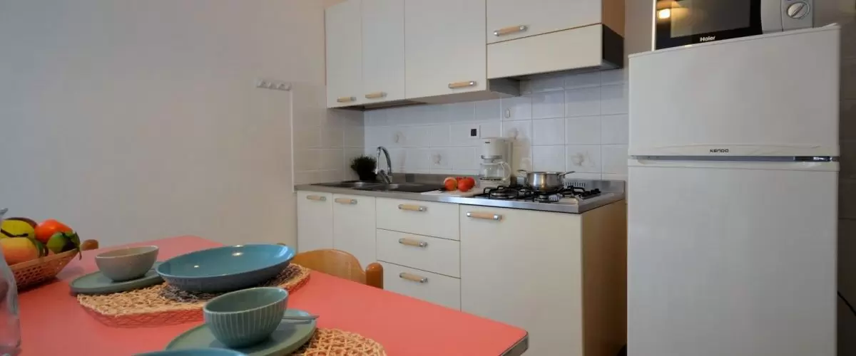 EGYLÉGTERŰ 2 fő részére: nappali kétszemélyes kanapéval, főzősarok, fürdőszoba, tágas terasz.
