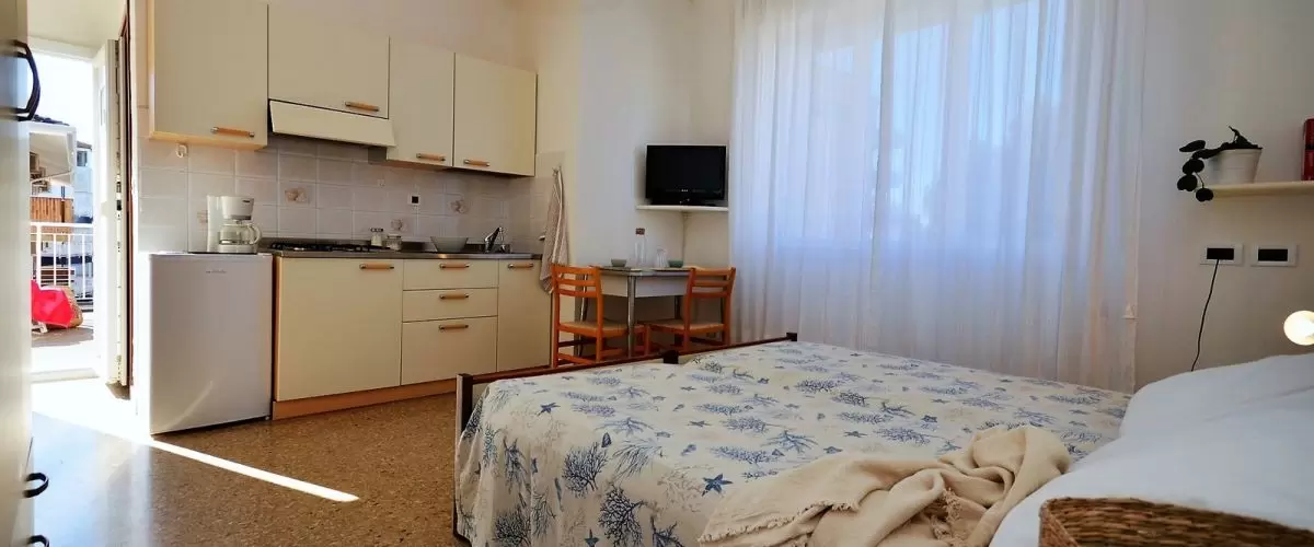3 szintes épület mindössze 100 méterre a tengerparttól, néhány lépésre a sétálóutcától és a Lignano Sabbiadoro-i kikötőtől, szupermarkettel és üzletekkel a közvetlen közelében. Az épületben 14 különböző típusú apartman található, melyek egyszerűen és praktikusan berendezettek terasszal. Légkondicionáló és parkolási lehetőség a szabad helyek függvényében.