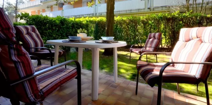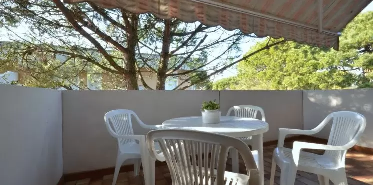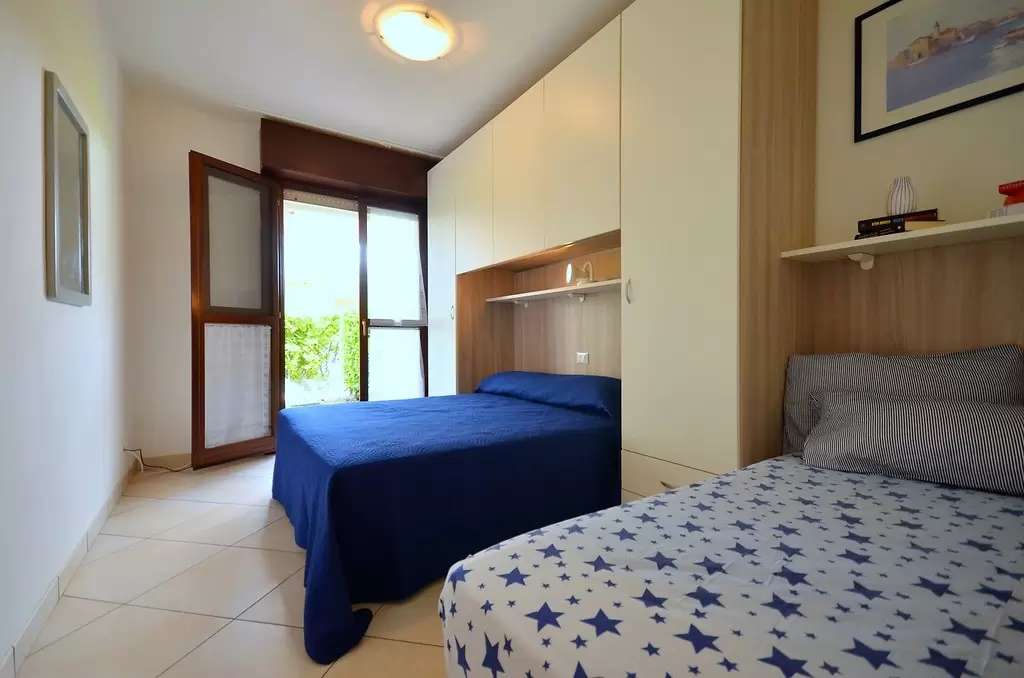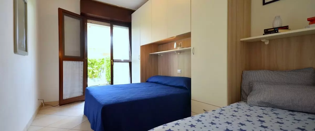 KÉT LÉGTERŰ, 3-5 fő részére a földszinten: nappali kétszemélyes kanapéval, 1 hálószoba franciaággyal és egyszemélyes ággyal, konyhasarok, fürdőszoba, saját kert. Légkondicionáló és mosógép.