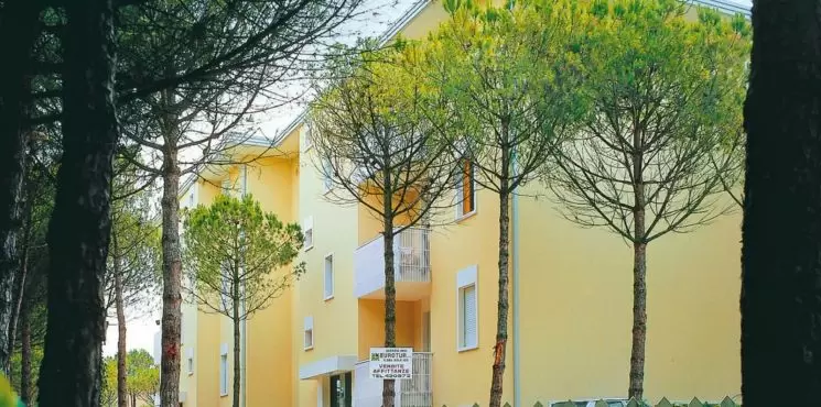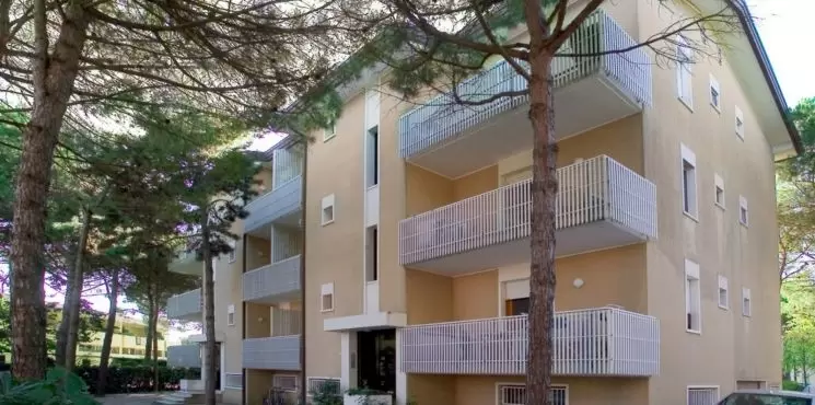 Épület nyugodt környéken, tágas közös kerttel körülvéve, foglalt parkolóhelyekkel, 350 m-re a tengertől.