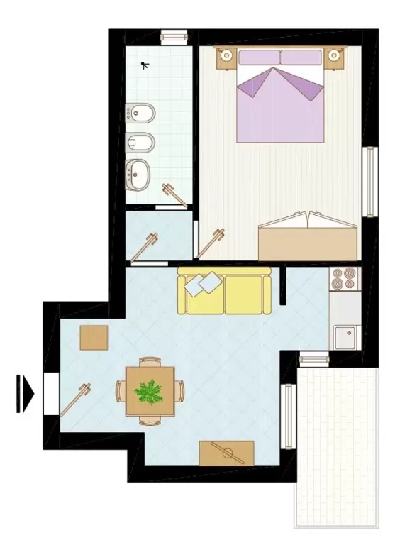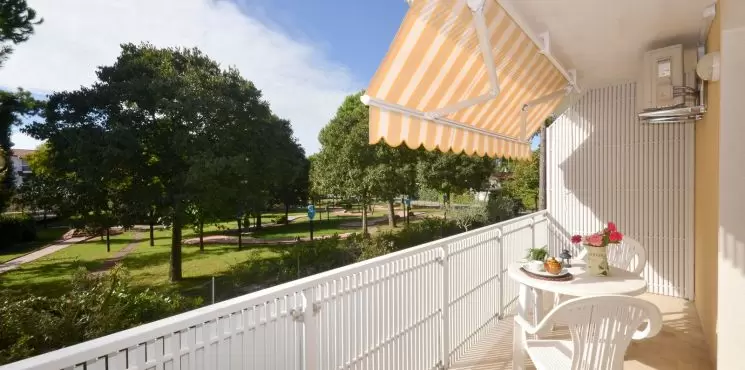 KÉT LÉGTERŰ 2-4 fő részére: nappali dupla dívánnyal, szoba franciaággyal, főzősarok, fürdőszoba, erkély. Légkondicionálás.