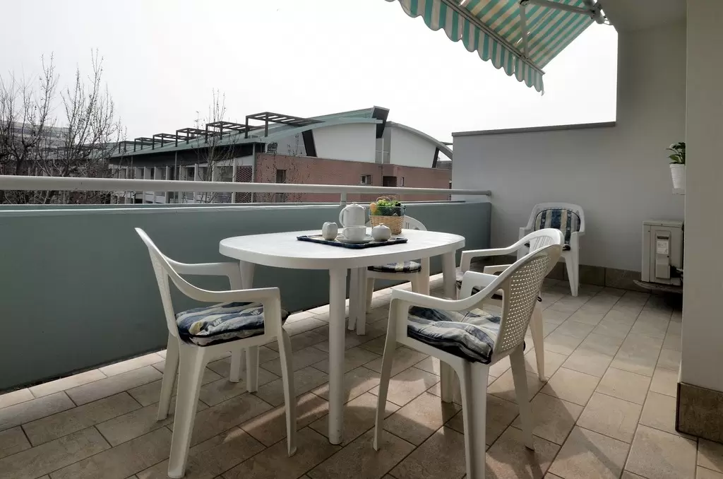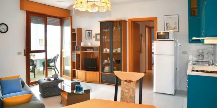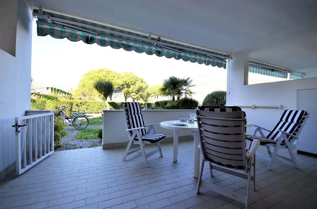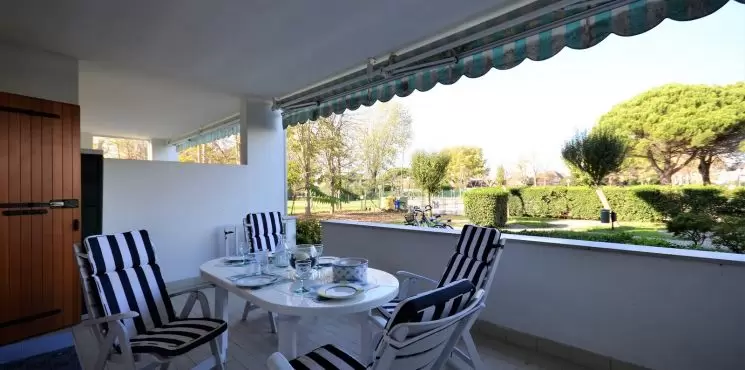 Apartmanház "Bibione Pineda"-n medencével, zöldövezetben, fedett zárt parkolóval, széffel, 100 m-re a tengertől, közel a kikötőhöz.