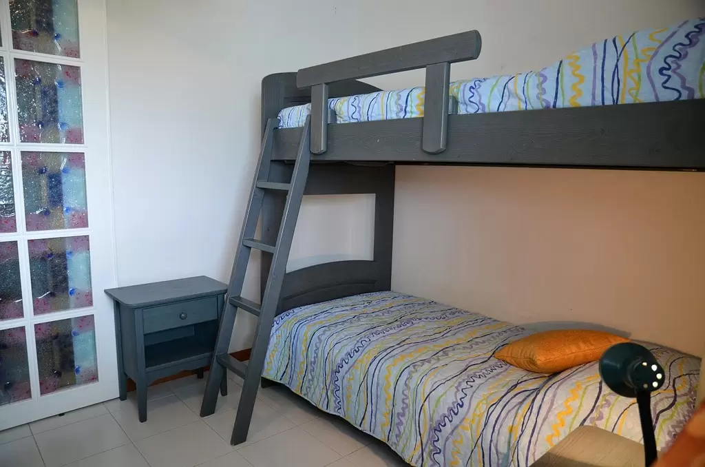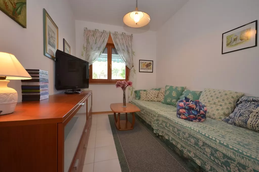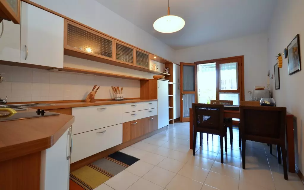 NÉGY LÉGTERŰ 6 fő részére: nappali, 2 hálószoba franciaággyal, 1 hálószoba 2 egyszemélyes ággyal, konyhasarok, 2 fürdőszoba, földszinten terasz nyugágyakkal. Légkondicionálóval, mosógéppel, mosogatógéppel és 2 parkolóhellyel felszerelt.
