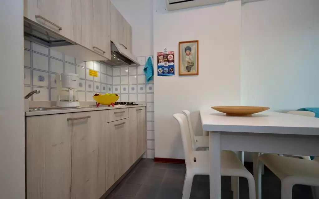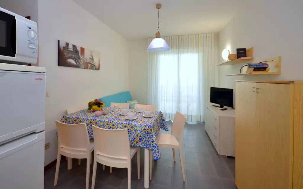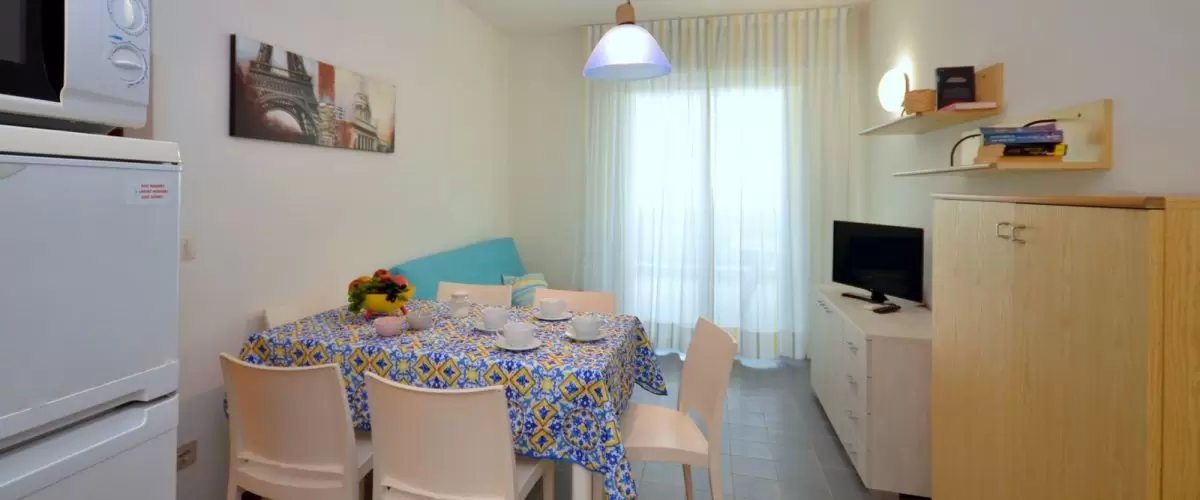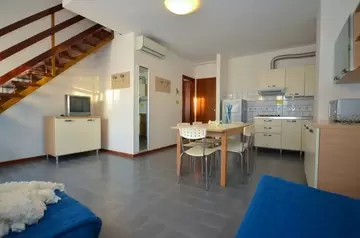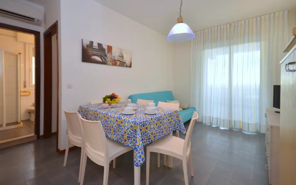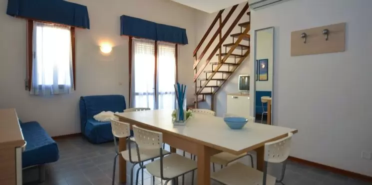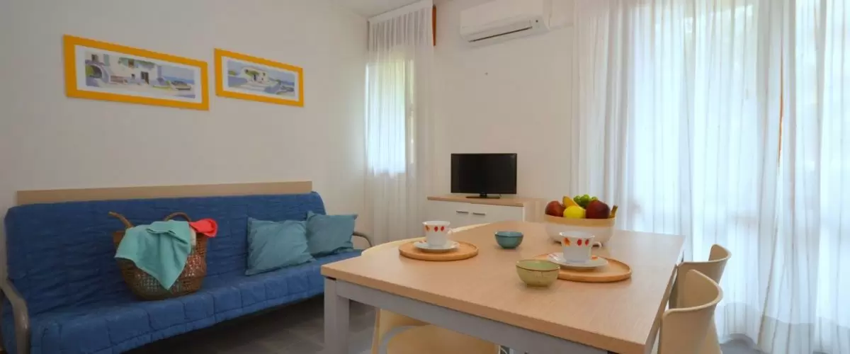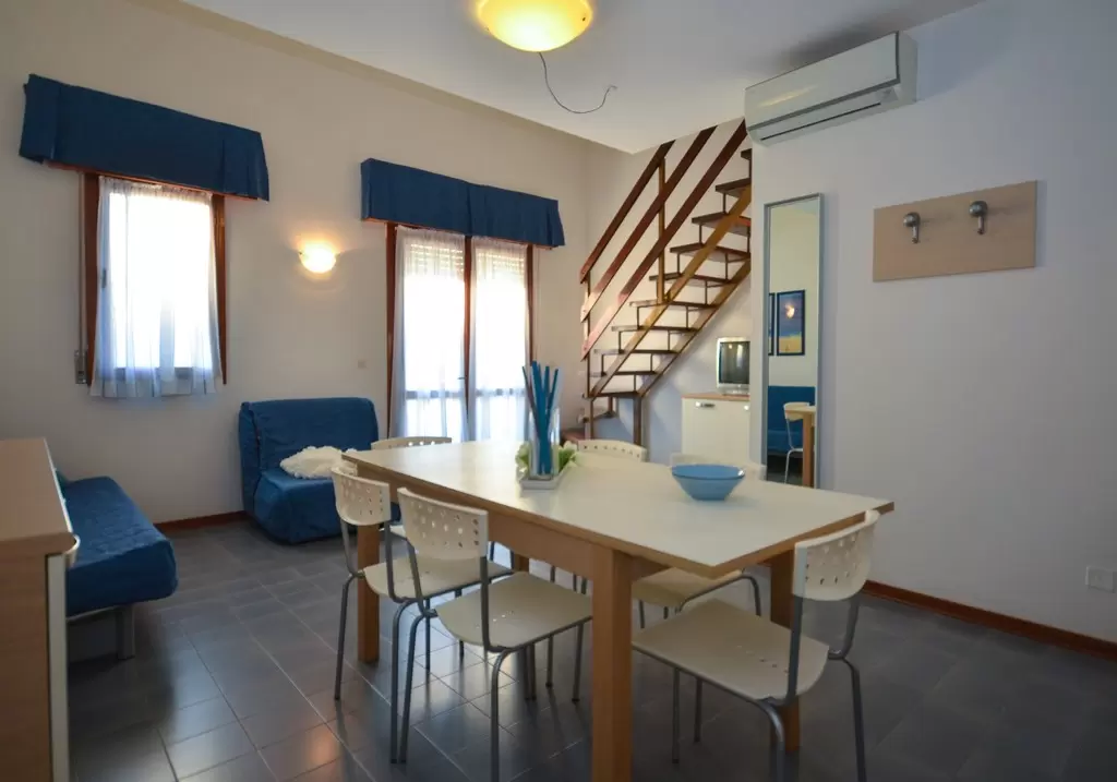 HÁROM LÉGTERŰ 3-5 fő részére légkondicionálással és mosógéppel: nappali, 1 szoba emeletes ággyal é 1 egyszemélyes ággyal, 1 szoba kétszemélyes kanapéval, főzősarok, fürdőszoba, terasz. Széf nélkül.