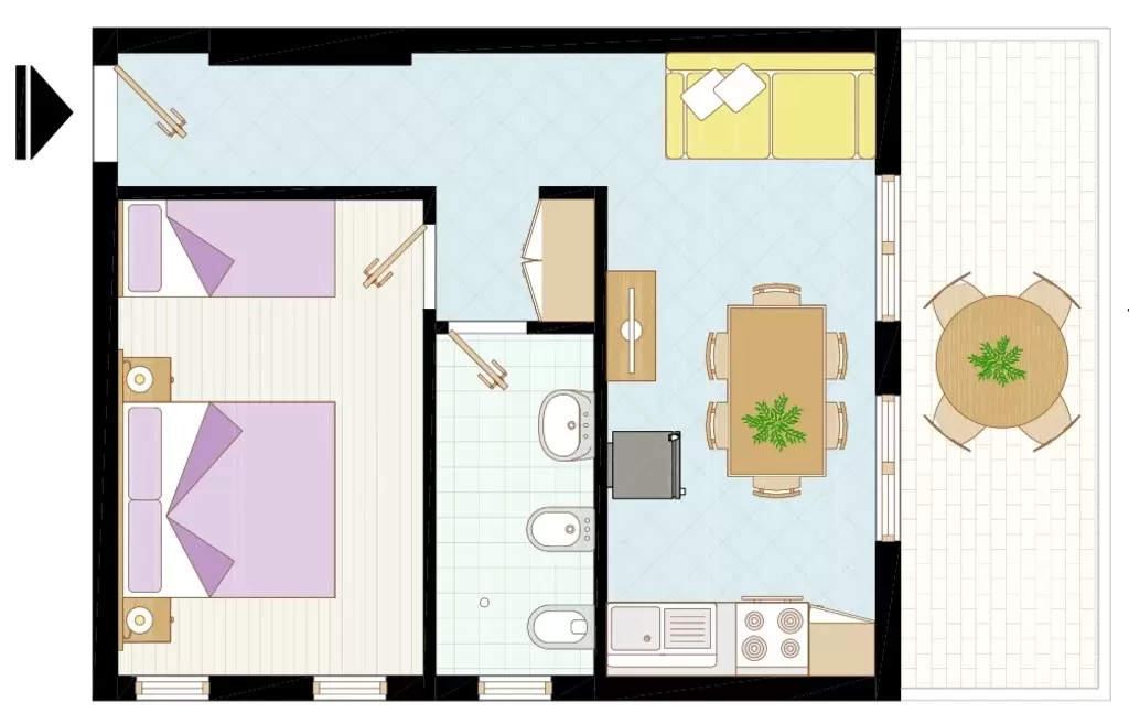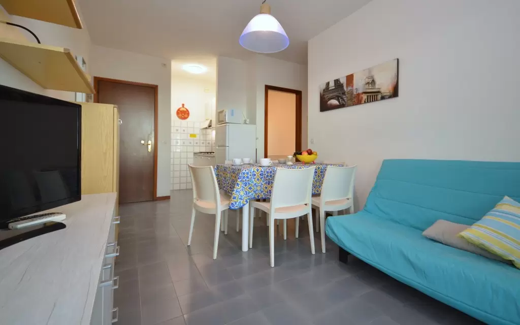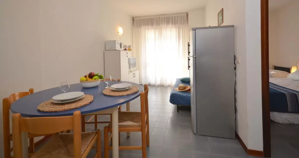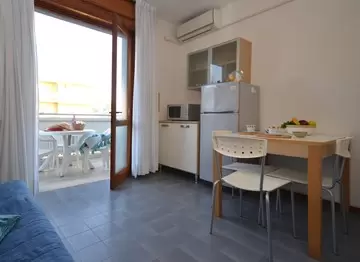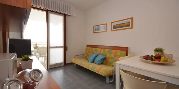 EGY LÉGTERŰ, 3 fő részére: nappali 2 kétszemélyes kanapéval, főzősarok, fürdőszoba, erkély. Légkondicionálás.