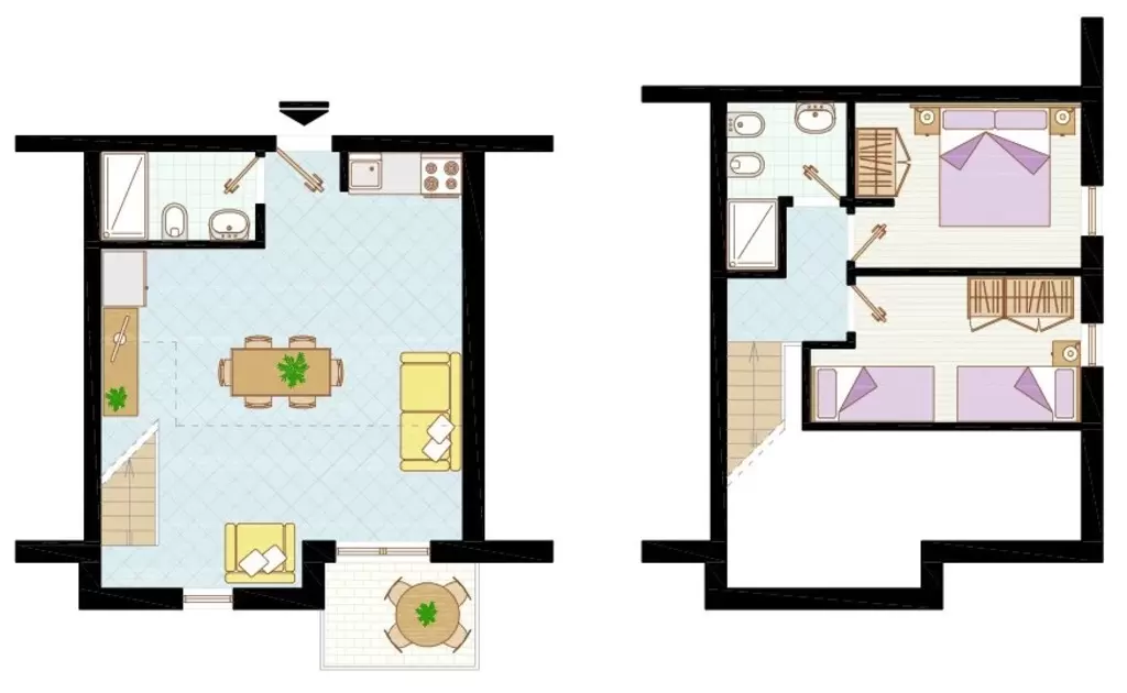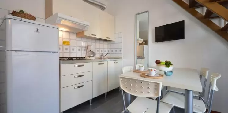 KÉT LÉGTERŰ manzárdos, teljesen felújíitott, légkondicionálóval 3-5 fő részére 2 szinten: nappali kétszemélyes kanapéval, háromágyas szoba, főzősarok, fürdőszoba, terasz, légkondicionálás.
