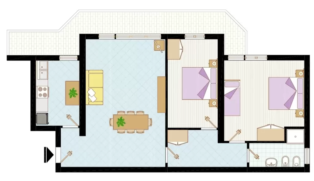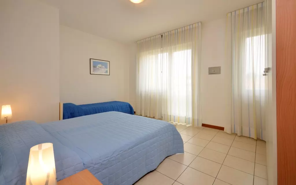 HÁROM LÉGTERŰ 5-7 fő részére: nappali dupla dívánnyal, 1 szoba franciaággyal és egyszemélyes ággyal, 1 kétágyas szoba, főzősarok, fürdőszoba, terasz. Légkondicionálás.