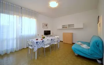 KÉT LÉGTERŰ 3-5 fő részére: nappali dupla dívánnyal, szoba franciaággyal és egyszemélyes ággyal, főzősarok, fürdőszoba, terasz. Légkondicionálás.