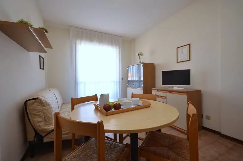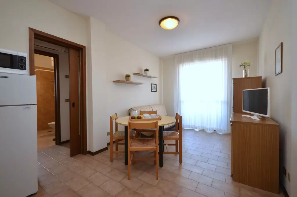 Közepesen nagy épület lifttel. Központi helyentalálható, néhány lépésre a tengertől. Mivel Bibione központjában található, tökéletes a gyermekes családok számára köszönhetően a csendes környezetnek, ahol a közelben minden szolgáltatás megtalálható és a strand is közel van. Ideális azoknak a baráti társaságoknak is, akik napközben a tenger mellett szeretnének pihenni, viszont esténként az éjszakai életet szeretnék élvezni a közeli éttermek, bárok és üzletek révén. Minden típus kínál: parkoló, légkondicionáló, televízió, mikrohullámú sütő és széf. Kis háziállatok bevitele megengedett. A strandszervizt az ár tartalmazza.