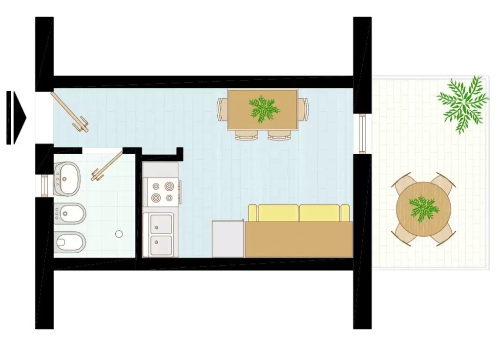 EGYLÉGTERŰ 2 fő részére: nappali dupla dívánnyal, főzősarok, fürdőszoba. Légkondicionálás.
