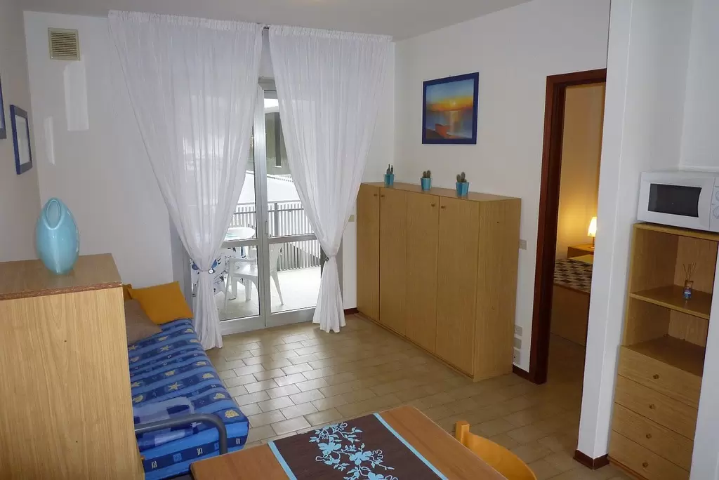 Egyszerűen, de mégis funkcionálisan berendezett apartmanok, tágas erkéllyel és foglalt parkolóhellyel, 900 méterre a tengerparttól.