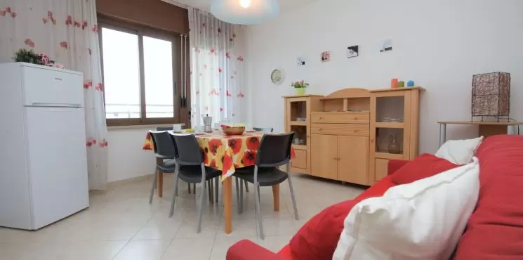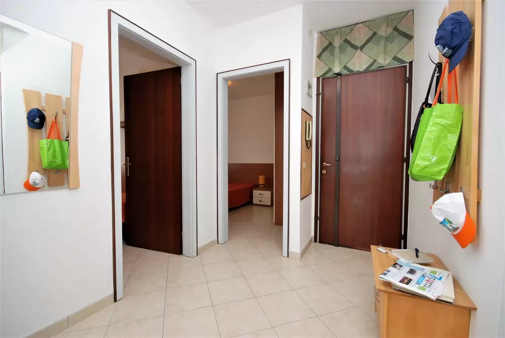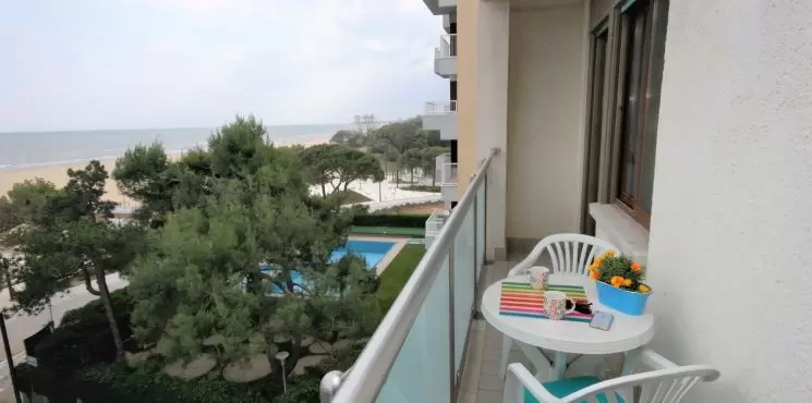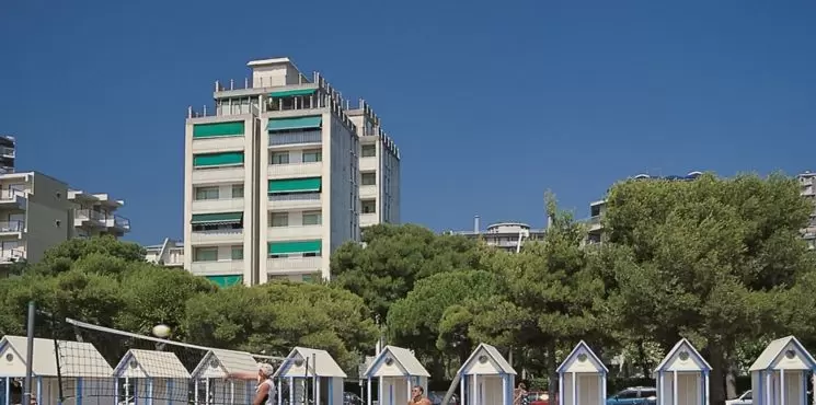 8 emeletes társasház. Jó elhelyezkedésű, tengerre néző, Lignano Sabbiadoro városrészen, a földszinten üzletek találhatóak. A központ körülbelül 10 percre található az apartmantól és gyalogosan könnyen megközelíthető. Az apartmanok egyszerűen és praktikusan vannak berendezve, TV-vel és tengerre néző erkéllyel. 2 lift, központosított TV antenna, kaputelefon található az épületben. A sorompóval ellátott parkolóhely a szabad helyek függvényében vehető igénybe.