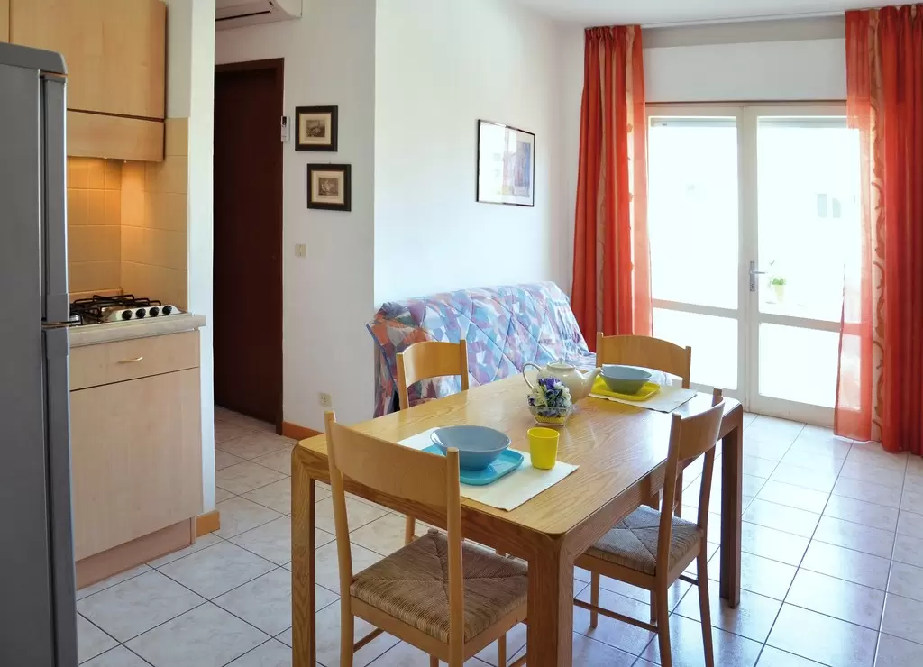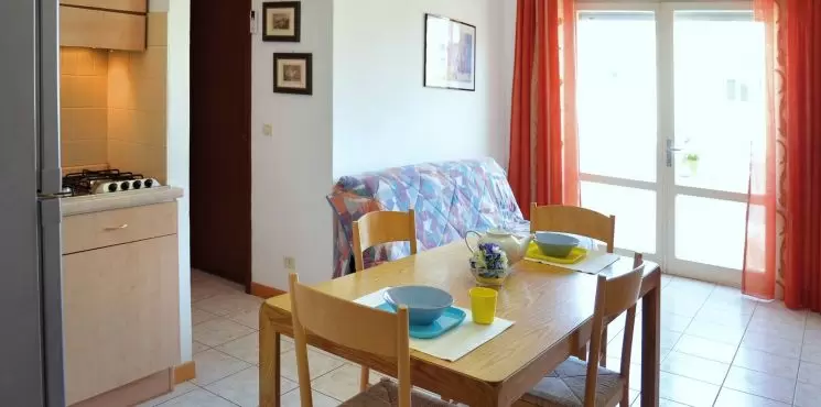 HÁROM LÉGTERŰ, 4-5 fő részére: nappali egyszemélyes kanapéval, szoba franciaággyal, szoba két egyszemélyes ággyal vagy emeletes ággyal, főzősarok, fürdőszoba, terasz. Légkondicionálás.