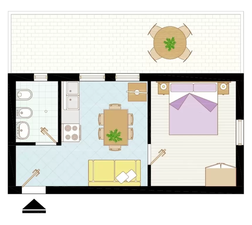 HÁROM LÉGTERŰ 4-6 fő részére: nappali kétszemélyes kanapéval, szoba franciaággyal, szoba emeletes ággyal, főzőfülke, fürdőszoba, terasz. Légkondicionálás.