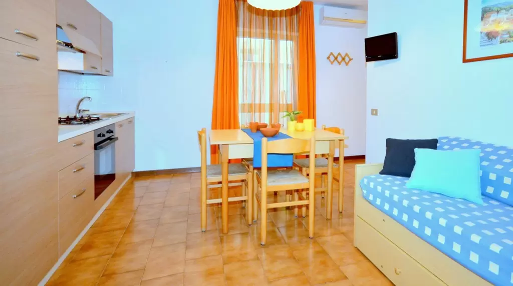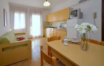 KÉT LÉGTERŰ 2-3 fő részére: nappali egyszemélyes kanapéval, szoba franciaággyal, főzőfülke, fürdőszoba, erkély. Légkondicionálás.