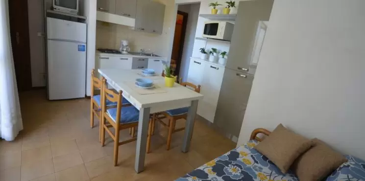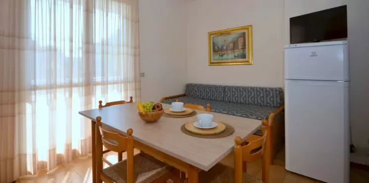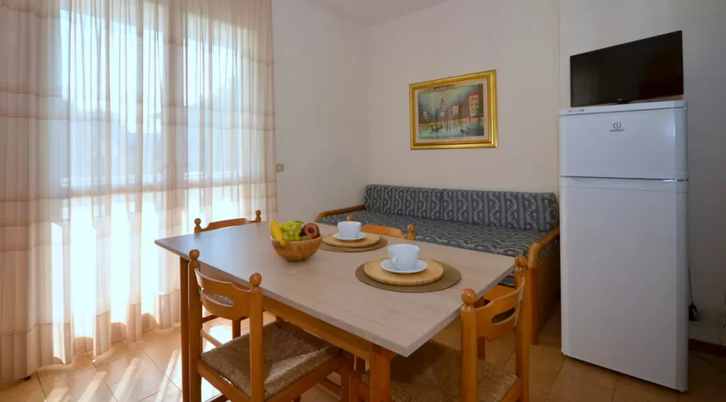 Modern épület saját kerttel, központi helyen, sétatávolságra a központtól és a strandtól, a heti piac közvetlen közelében. Tökéletes megoldás családok és fiatalok számára. Külső parkolóhelyek is rendelkezésre állnak. Minden típusban megtalálható: légkondicionáló, televízió, mikrohullámú sütő és széf. Kis háziállatok megengedettek. A strandszolgáltatás mindig benne van az árban.