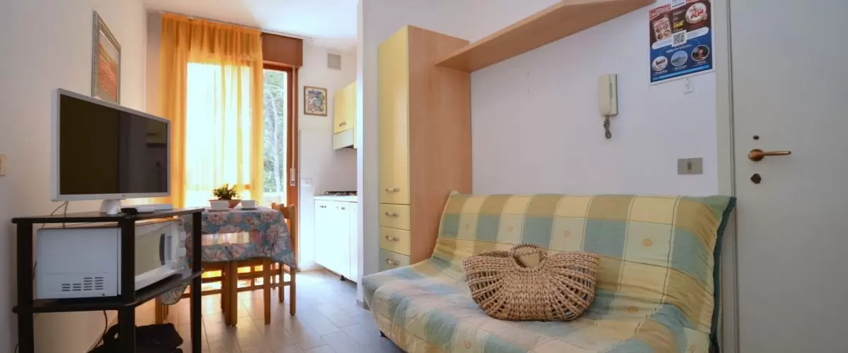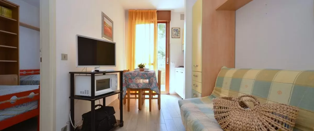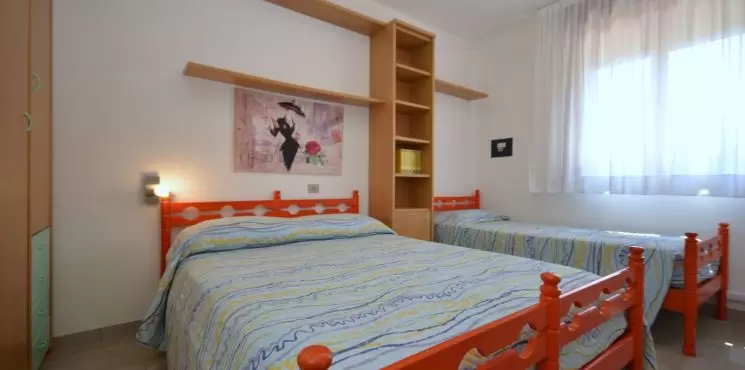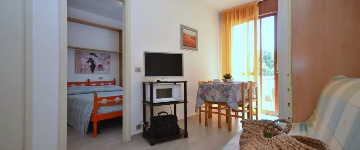 KÉT LÉGTERŰ 3-4 fő részére: nappali kétszemélyes kanapéval, szoba franciaággyal (vagy szoba franciaággyal és egyszemélyes ággyal és kinyitható egyszemélyes ággyal a nappaliban), főzősarok, fürdőszoba, terasz. Légkondicionálás.