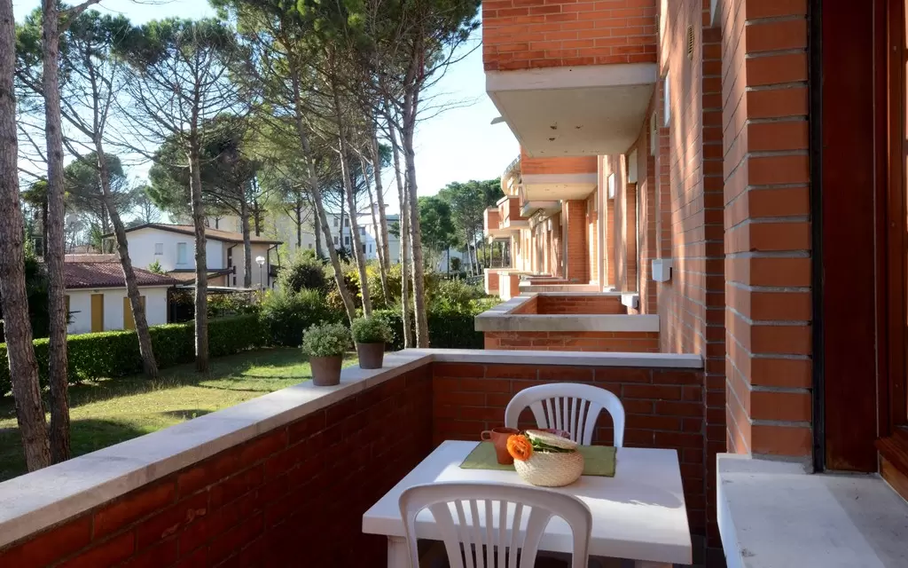 Üdülő 2 egységből, Bibione Pineda zöldövezeti részén, közel centrumhoz, 200 m-re a tengertől. Minden apartmanhoz parkoló tartozik.
