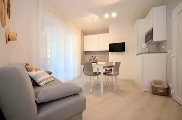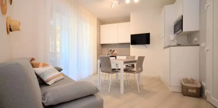 HÁROM LÉGTERŰ 4-6 fő részére, teljesen felújított: nappali kétszemélyes kanapéval, 1 hálószoba 1 franciaággyal, 1 hálószoba két egyszemélyes ággyal, konyhasarok indukciós főzőlappal és mosogatógéppel, fürdőszoba, terasz. Légkondicionálás. Mosógép.