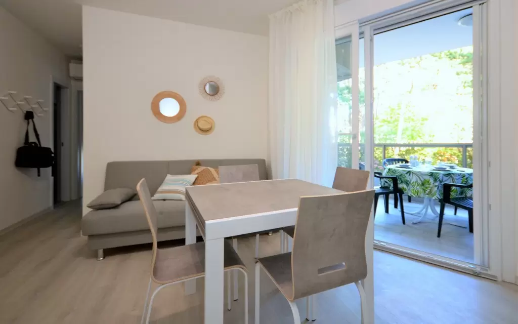 Lido del Sole szívében található társasház, csendes helyen, nagy közös kerttel körülvéve. Mindössze 5 perc sétával elérhető a napernyőkkel és kényelmes napozóágyakkal felszerelt strand. Éttermek, pizzériák és üzletek, boltok találhatóak a közelben, anélkül, hogy nyaralása alatt mozognia kellene az autójával. Ideális gyermekes családoknak, vagy olyan pároknak, akik zöldövezetben szeretnék eltölteni a nyaralásukat.