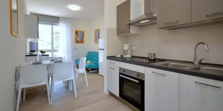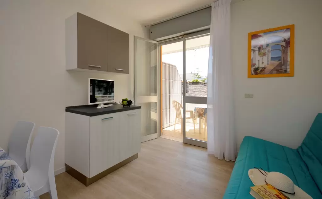 2 szintes épület, 8 apartmannal, lègkondiciònàlòval ès fűtèssel, foglalt fedett parkolóhelyekkel, 350 m-re a tengertől.
