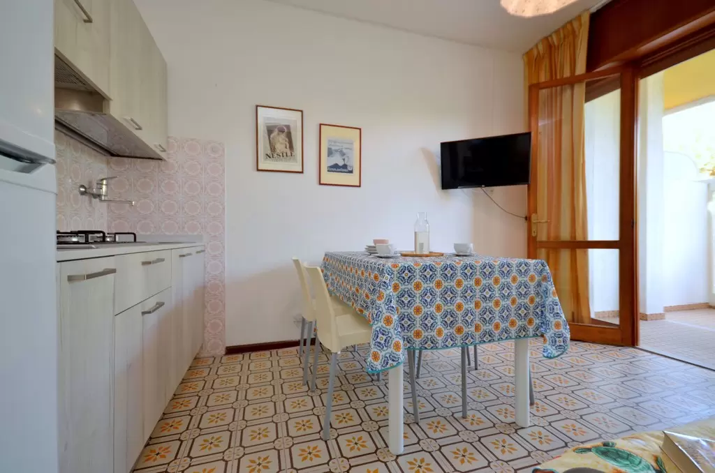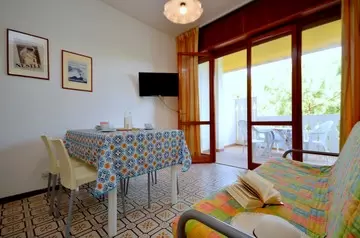Ötemeletes, liftes apartmanház Bibione Lido del Sole csendes részén. A tengerpart, mely kb. 150 m-re található, egy rövid sétával érhető el. Ideális választás azoknak, akik csendes környezetben szeretnének pihenni. Bibione Spiaggia-ra és a főutcára autóval pár perc alatt, gyalog kb 15-20 perc alatt érhetünk el.