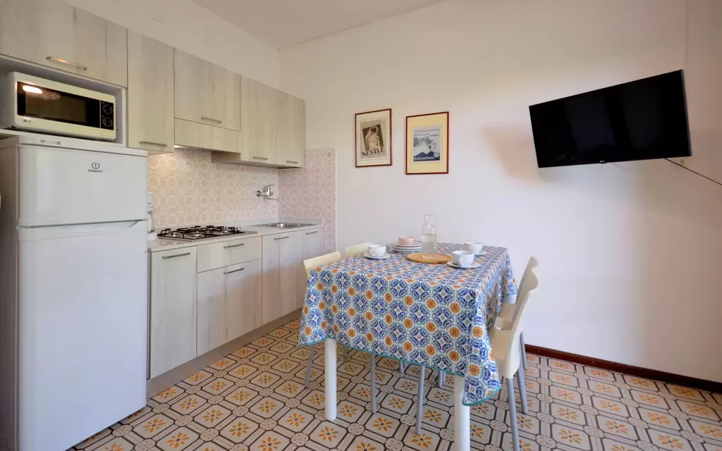B-4 főre: nappali kétszemélyes kanapéval, konyhasarok, hálószoba franciaággyal, fürdőszoba, erkély. Tv, széf, mikró, légkondicionálás.