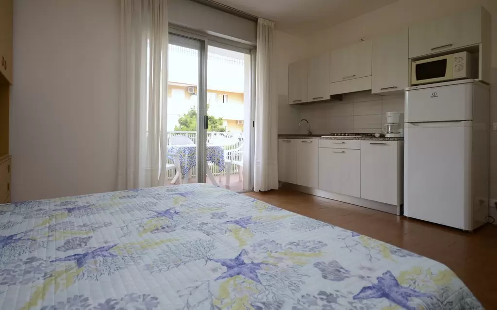 Ötemeletes, liftes apartmanház Bibione Spiaggia részén, pár lépésre a főutcától, csak 2 sarokra a Piazzale Fontana-tól. A tengerpart kb. 300 m-re van. Azoknak ajánljuk, akik a központi elhelyezkedést és a város pezsgő nappali-esti hangulatát keresik.