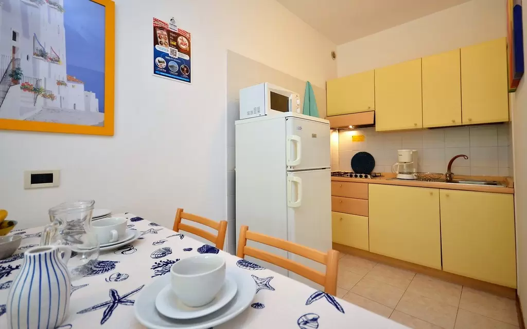 C1-6 főre: nappali kétszemélyes kanapéval, konyhasarok, hálószoba franciaággyal, ablak nélküli hálószoba emeletes ággyal és 1 fotelággyal, fürdőszoba, tengerre néző erkély. Tv, mikró, légkondicionálás, mosogatógép.