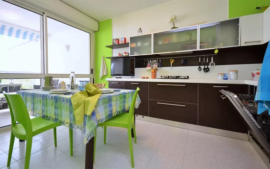 B1-4 főre: nappali, konyhasarok, hálószoba franciaággyal és emeletes ággyal, fürdőszoba, erkély. Tv, széf, mikró, légkondicionálás, mosogatógép, mosógép.