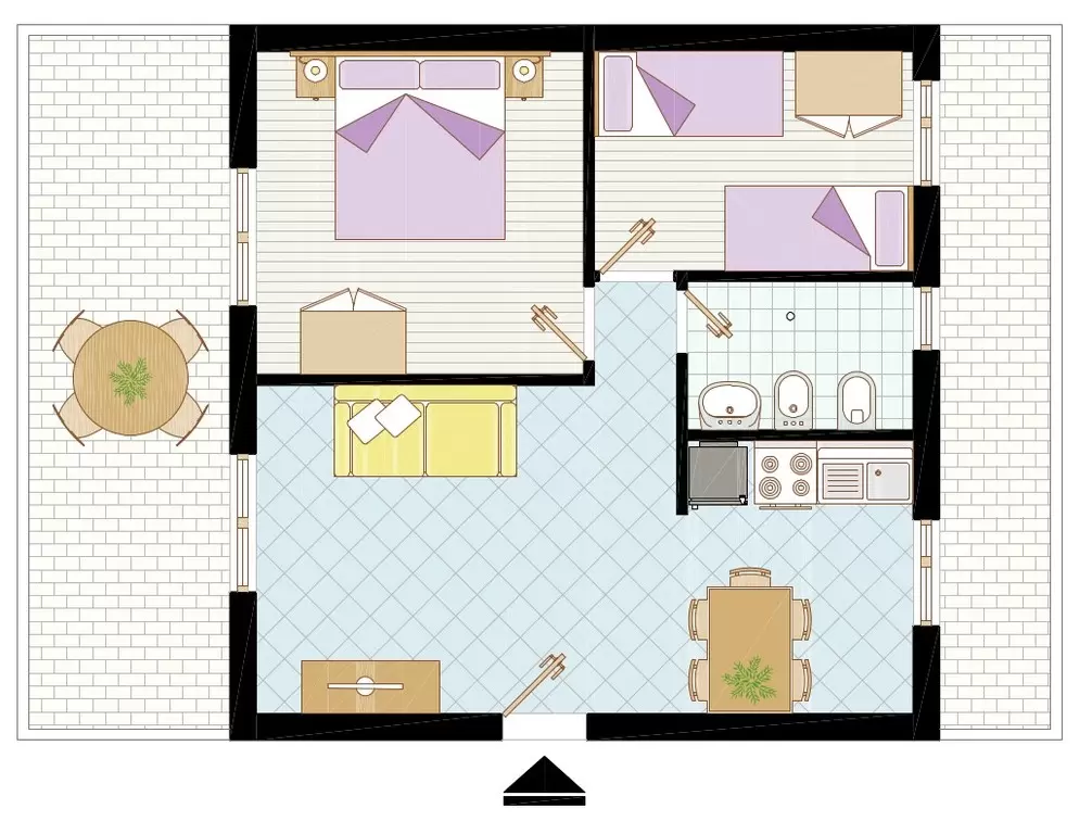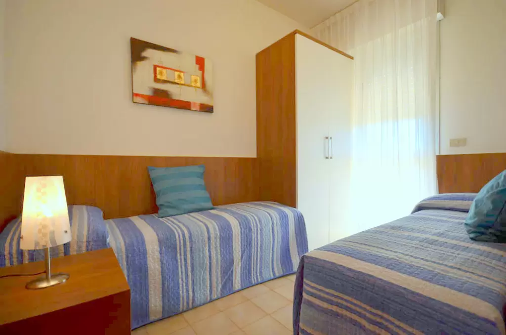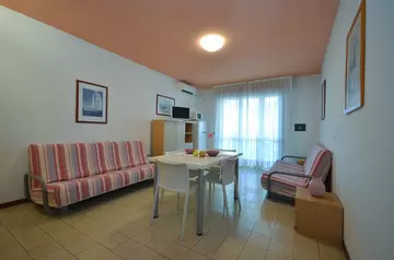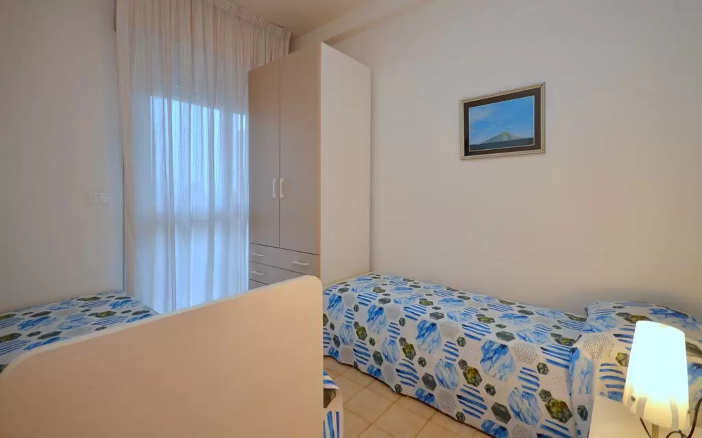B-5 főre: nappali kétszemélyes kanapéval, konyhasarok, hálószoba franciaággyal és 1 ággyal, fürdőszoba, erkély. Tv, széf, mikró, légkondicionálás.