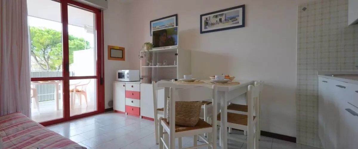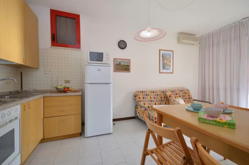 Kétemeletes apartmanház Bibione Spiaggia csendes részén. A népszerű keddi piac pár perc sétára van az apartmanháztól. A nagy közös kert kellemes pihenést kínál a vendégeknek.