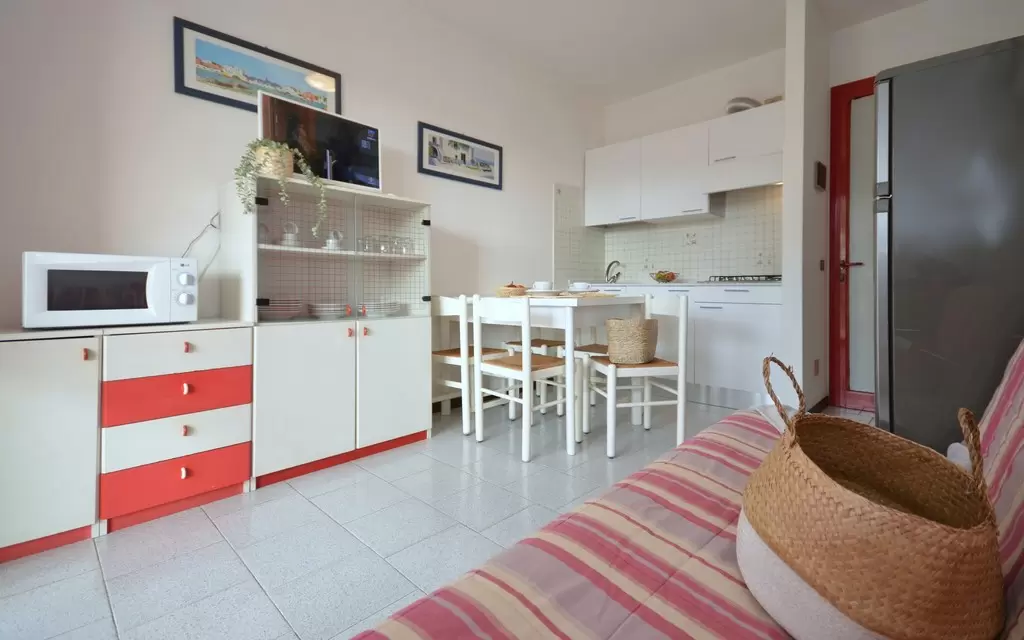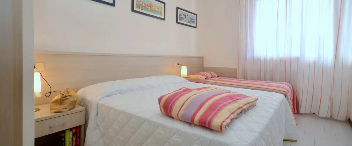 B-5 főre: nappali kétszemélyes kanapéval, konyhasarok, hálószoba 3 ággyal, fürdőszoba, erkély. Tv, széf, mikró, légkondicionálás.
