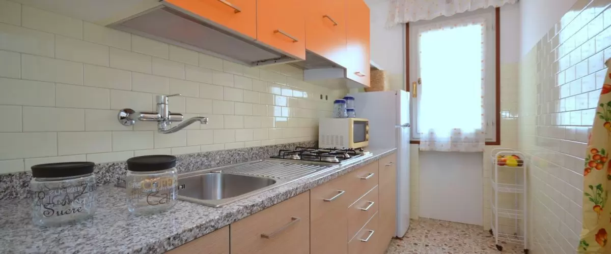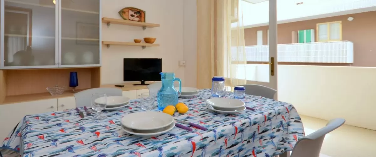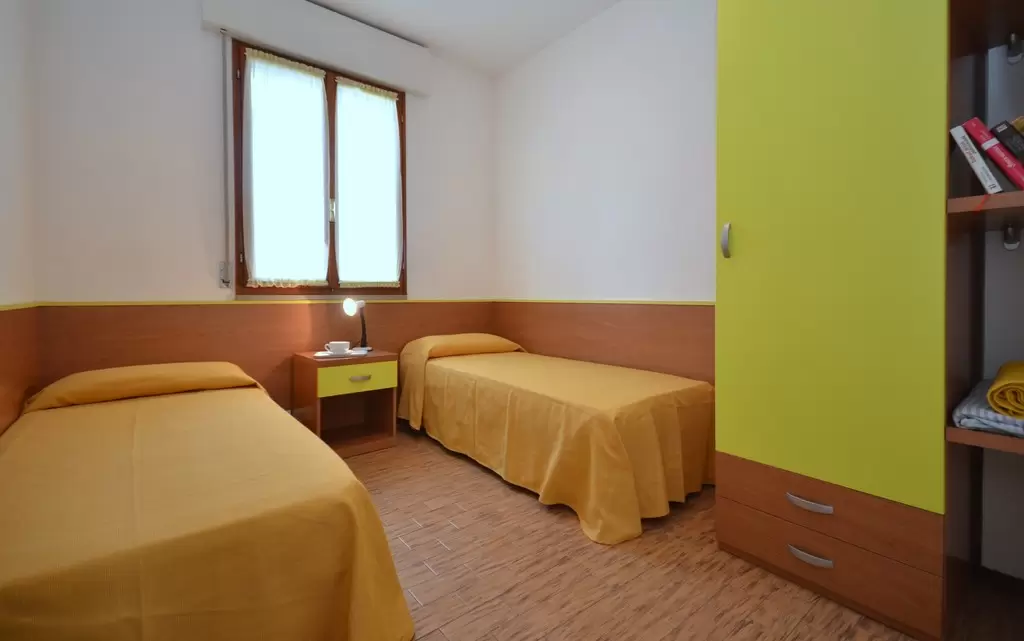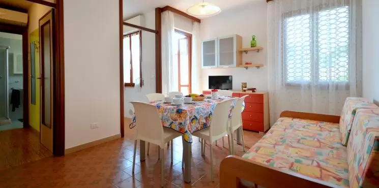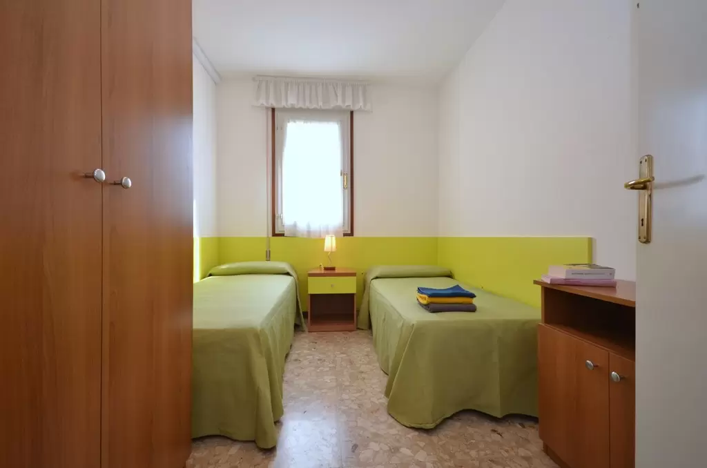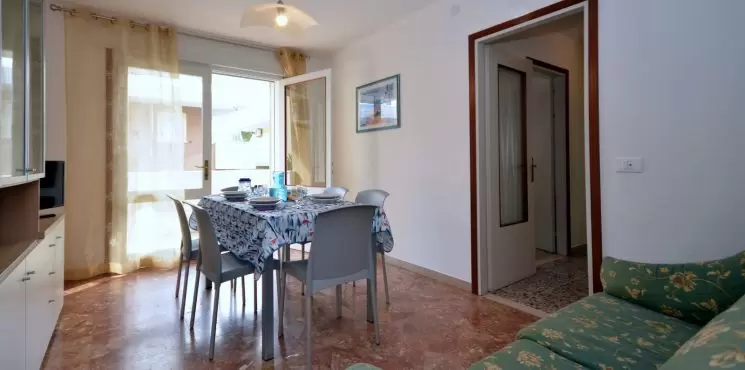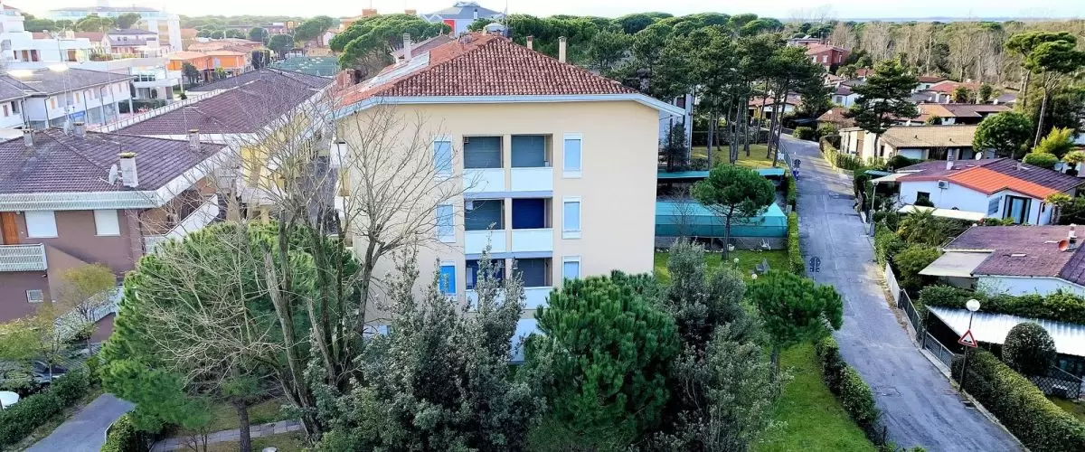 2 háromemeletes, lift nélküli apartmanház egymás mellett egy nagy kertben, Bibione Pineda központjához közel. Az éttermek és az üzletek sétatávolságra vannak. A tengerpart kb. 450 m-re található. Az apartman nyugodt, csendes részen helyezkedik el, tökéletes kikapcsolódást kínál. Bibione Spiaggia és a főutca 3 km-re található, mely autóval pár perc alatt elérhető.