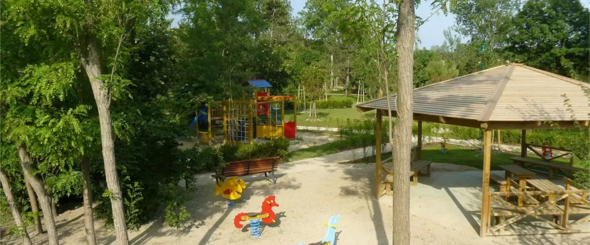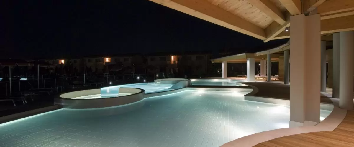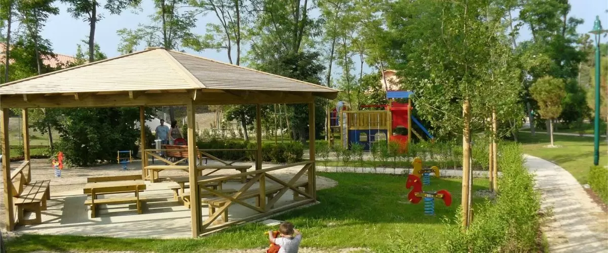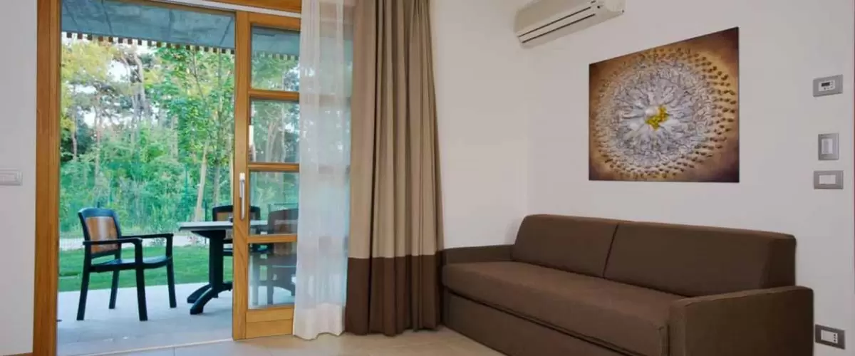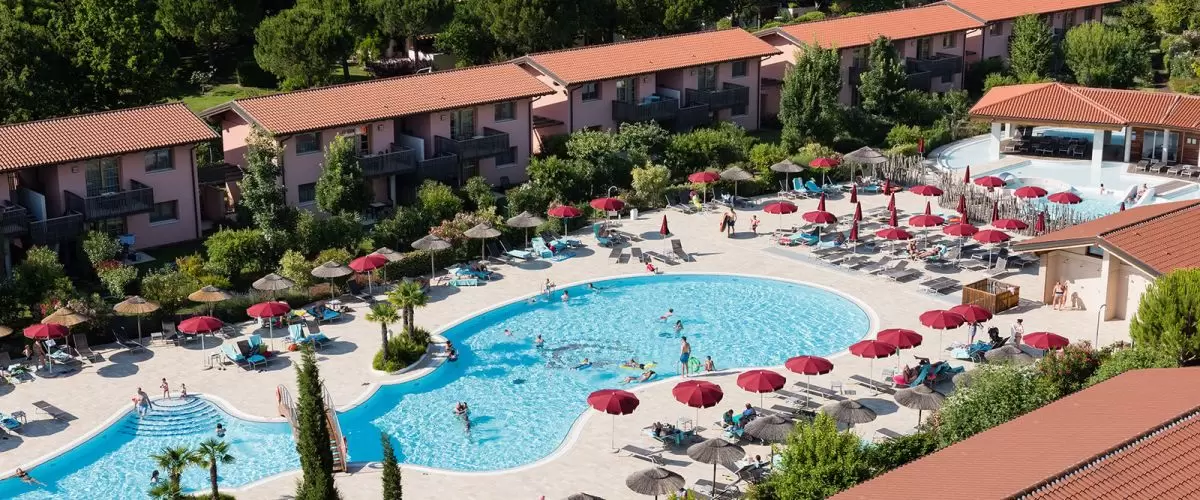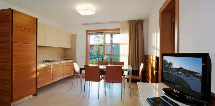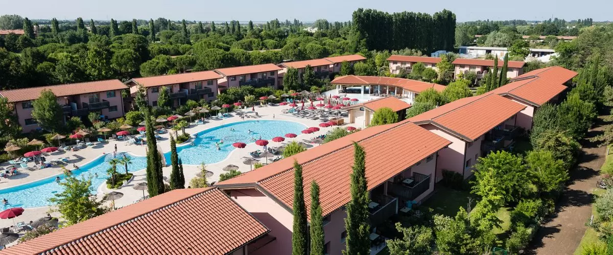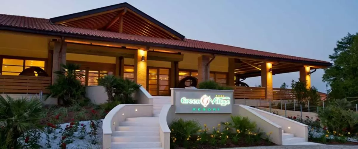 A szállodakomplexum részben erdős biológiai rendszerrel megtartott 40.000 m2 területen fekszik, tökéletes harmóniában a természettel. Az öko-kompatibilis anyagok felhasználásával alacsony környezeti hatással felépített épületegyüttes éppen ezért ideális a pihenésre és a kiváló szolgáltatások élvezetére. A 19 hálószobából álló központi épület az alábbi szolgáltatásokat kínálja: club house, hall, lobby, bár, recepció és tágas panorámát nyújtó árkádos étterem. Az egyszerű és kifinomult konyha a piacon fellelhető legjobb alapanyagokból szakszerűen és odafigyeléssel készített mediterrán ételeket kínál. Minden helyiséget a legújabb trend, és a Made in Italy szerint elegánsan rendeztek be. A vendégparkoló a földszinten található. Az épület körül vevő tágas zöld területen található a 20 bungalóra osztott 81 lakóegységből (44 két légterű és 36 három légterű apartman) álló villafalu. Az apartmanok berendezése természetes anyagból készült és visszafogott színű, amely az elegáns és modern díszítésekkel kiemeli a hely exkluzivitását.A Green Village Resort területén szabadtéri amfiteátrum kínál kitűnő helyet a szórakozásra és az animátori tevékenységeknek, míg a különböző mélységű vízi élményekkel felszerelt 680 m2 geotermikus medence és a tágas napozóterasz foglalja keretbe a kizárólag felnőttek részére szóló elegáns és modern szabadtéri Spa-t, 12 férőhelyes szaunával és gőzfürdővel, hidromasszázzsal (34 °C) és fitness részleggel. A különböző épületekhez a terület körülvevő út mentén, a gyalogos ösvény helyett kerékpárral is eljutunk. Emellett a közelben található 12.000 m2 kiterjedésű nemzeti park területén tornaösvényt és játszóteret találunk.