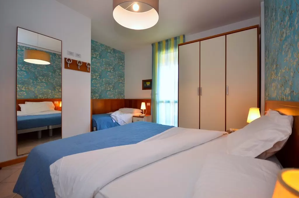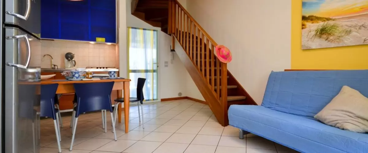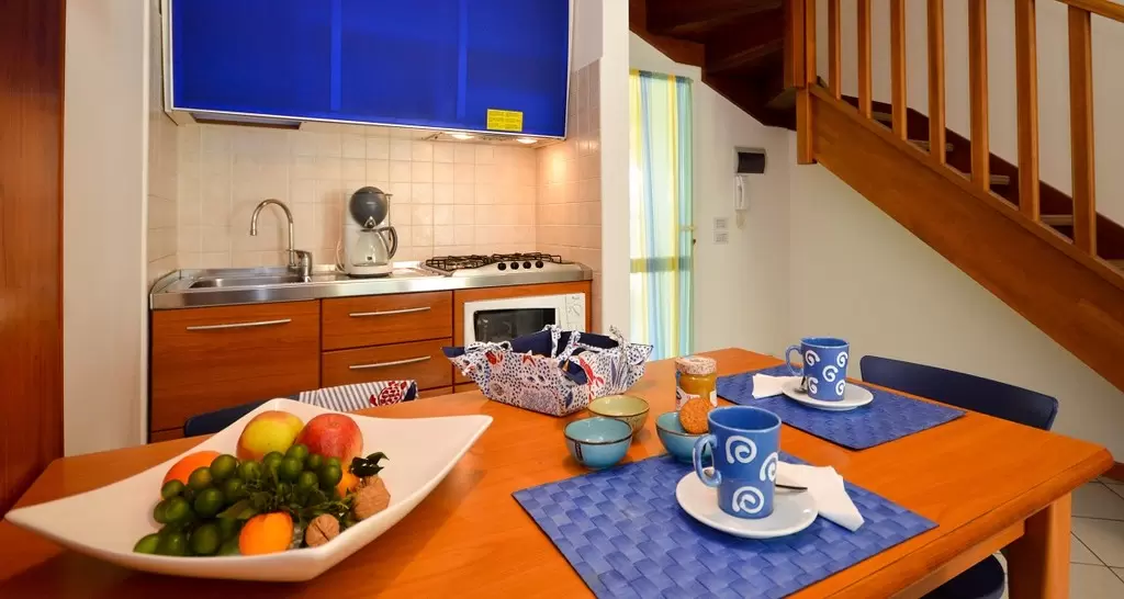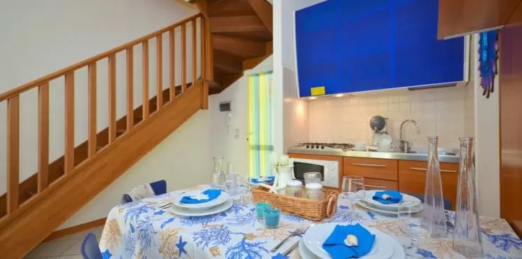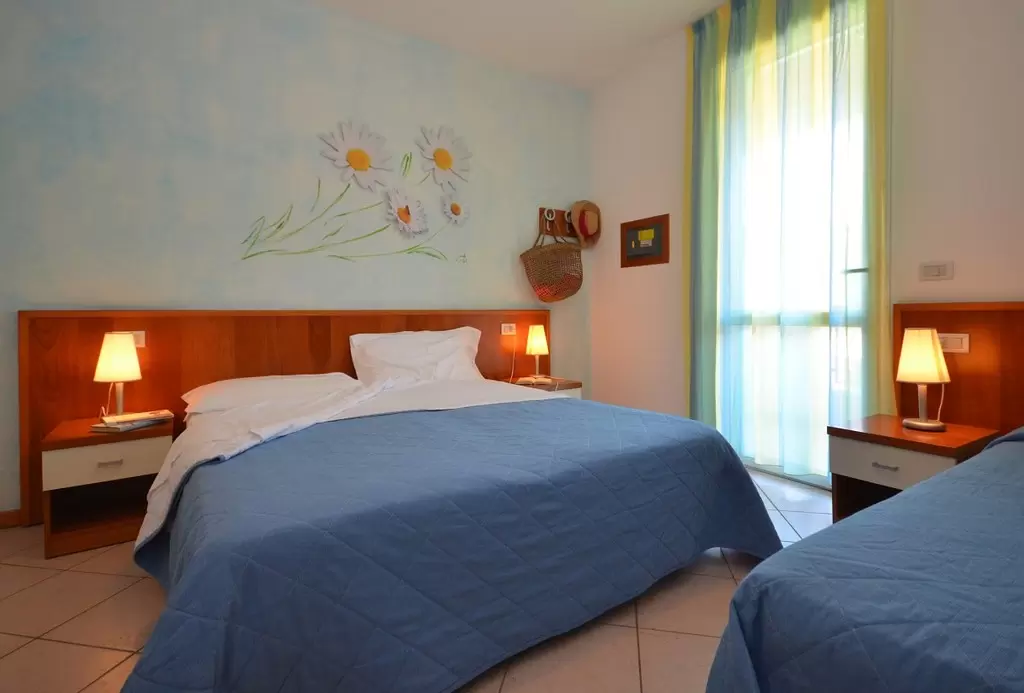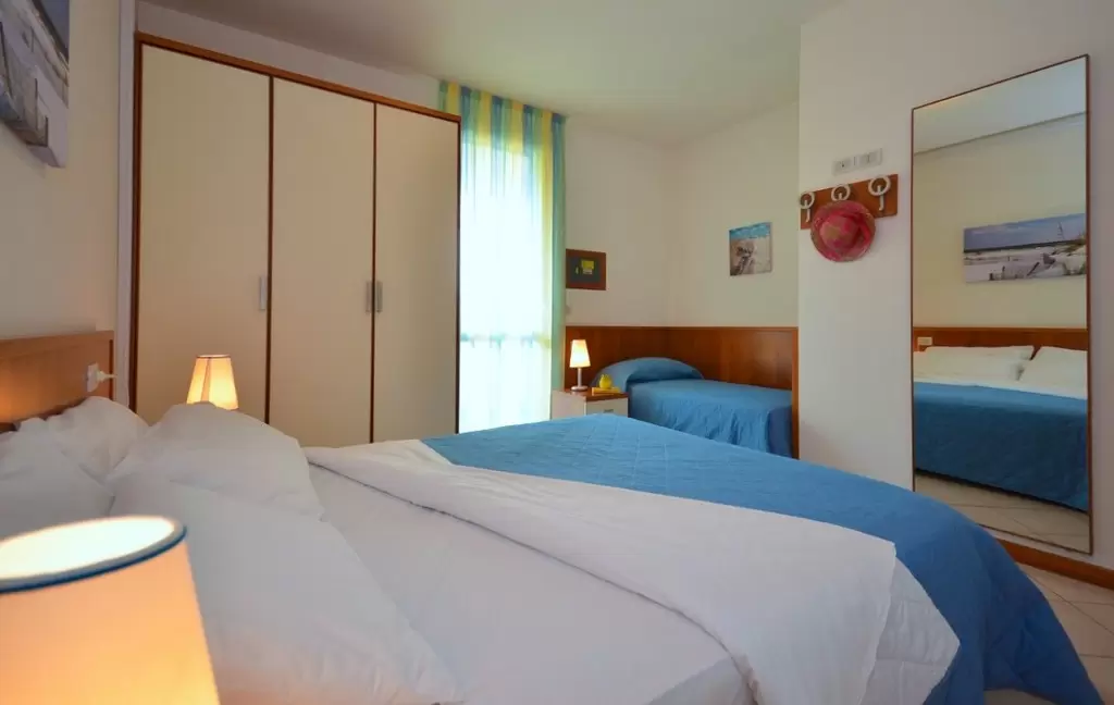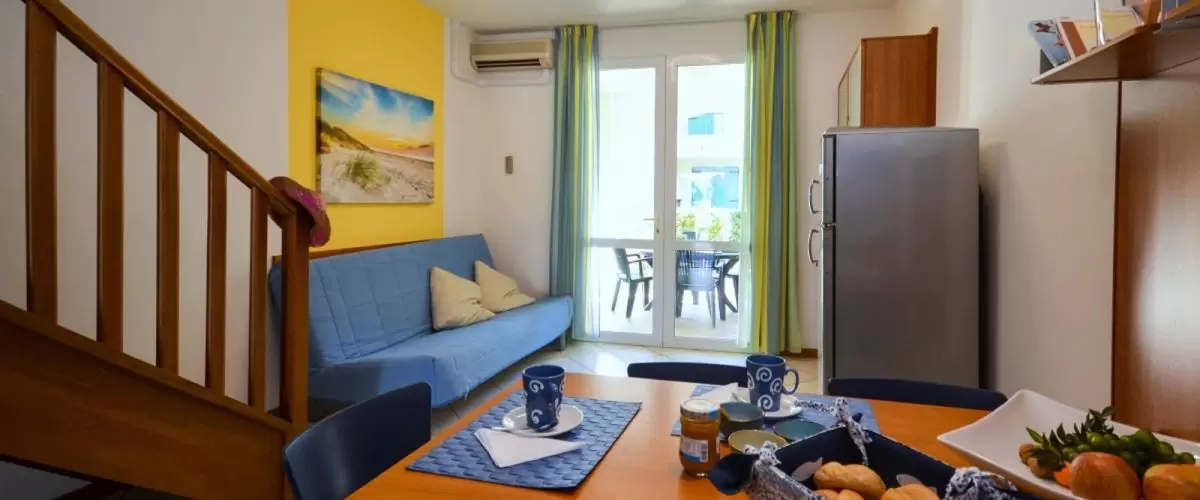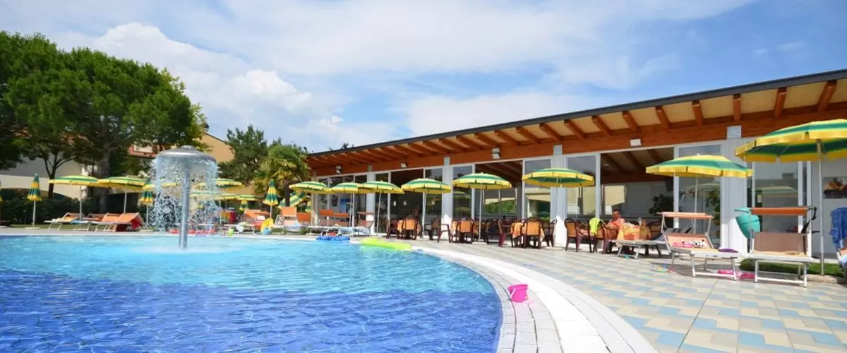 Egyemeletes sorházakból, 100 apartmanból álló üdülőfalu a Via delle Nazioni és a Via Unita d'Italia sarkán, Bibione Lido del Sole részén. A közelben üzletek vannak. A tengerparttól csak 650 m-re található, mely kerékpárral is kényelmesen megközelíthető. Az üdülőfaluban nagy úszómedence és gyerekmedence, ingyenes wifi, snack bár / étterem a medence partján, szabadtéri játszótér várja a nyaralókat. Egy zsetonos mosoda is megkönnyíti a nyaralást.
