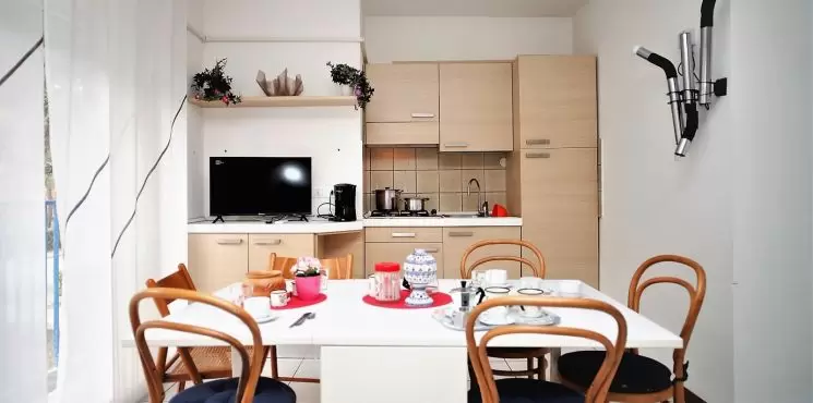 Lakóház 200 méterre a tengertől és egy rövid sétára Pineta központjától, bőséges saját parkolóval és egy második bejárattal a hátsó bejáratnál, lifttel felszerelve, amely közvetlen hozzáférést biztosít a parkolóból az épületbe. A társasház területén kerékpártároló található. A közelben üzletek, bárok, pizzériák és éttermek találhatók.