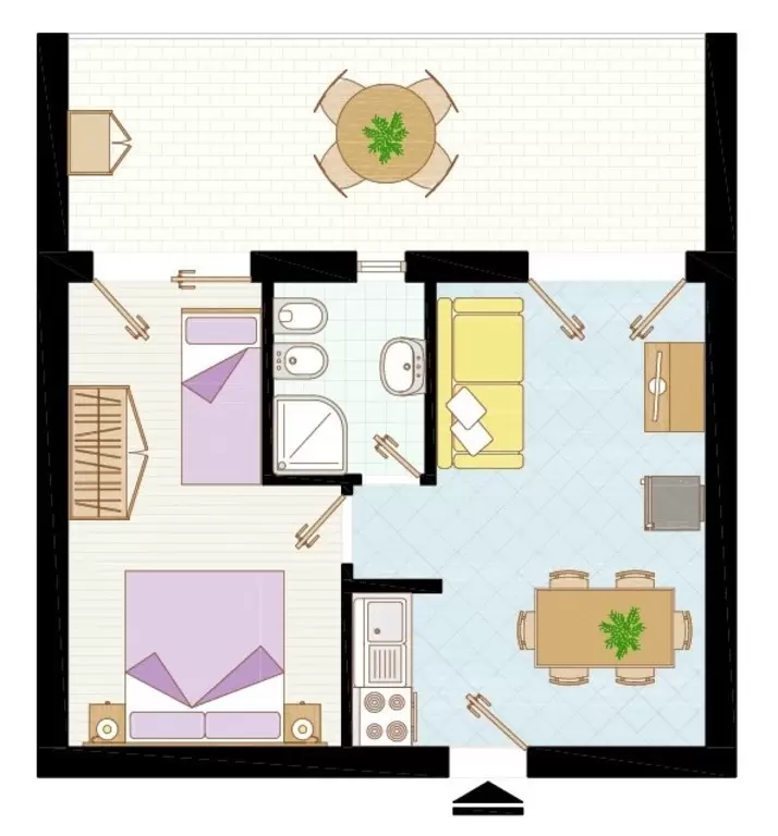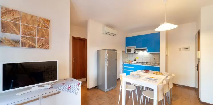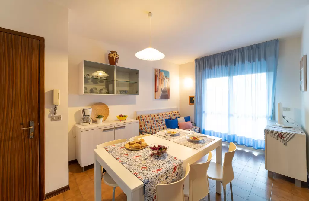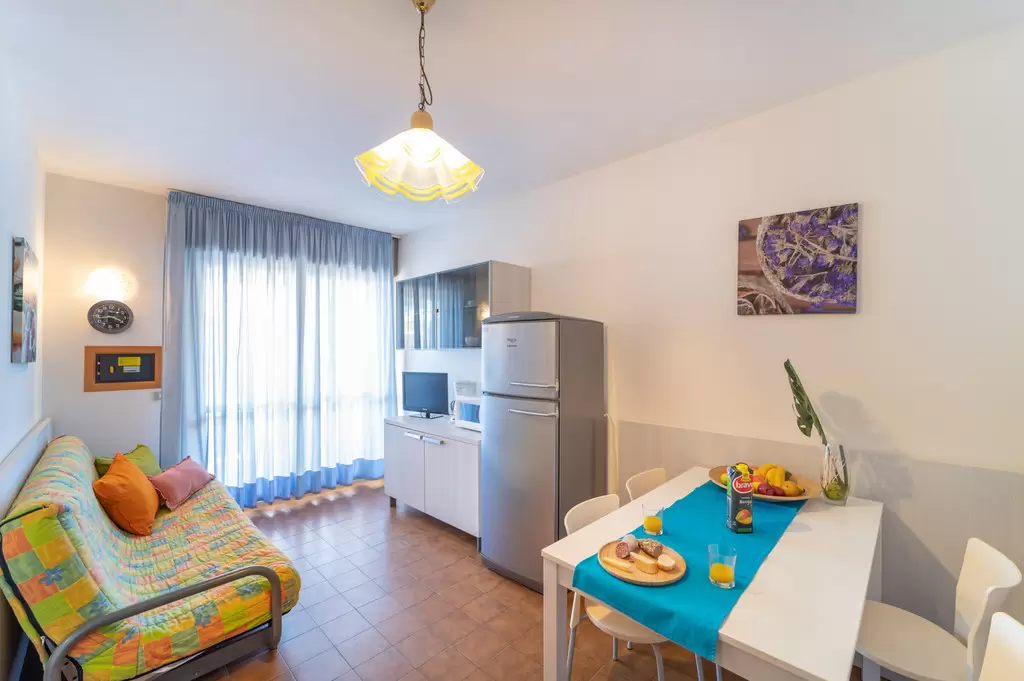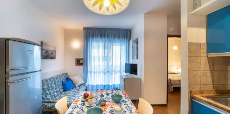 KÉT LÉGTERŰ 2-4 fő részére: nappali kétszemélyes kanapéval, kétágyas szoba, főzőfülke, fürdőszoba, tágas fedett erkély. Air-conditioning.