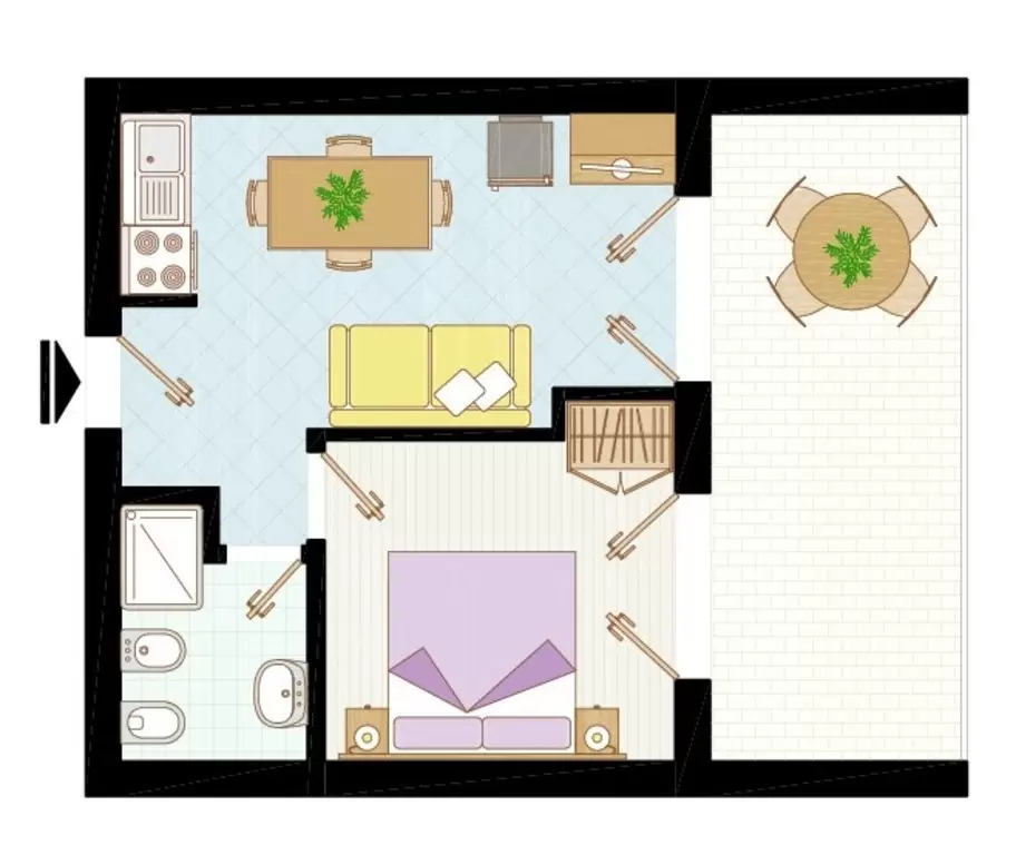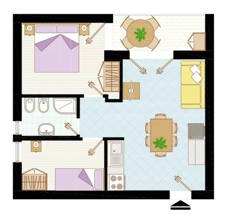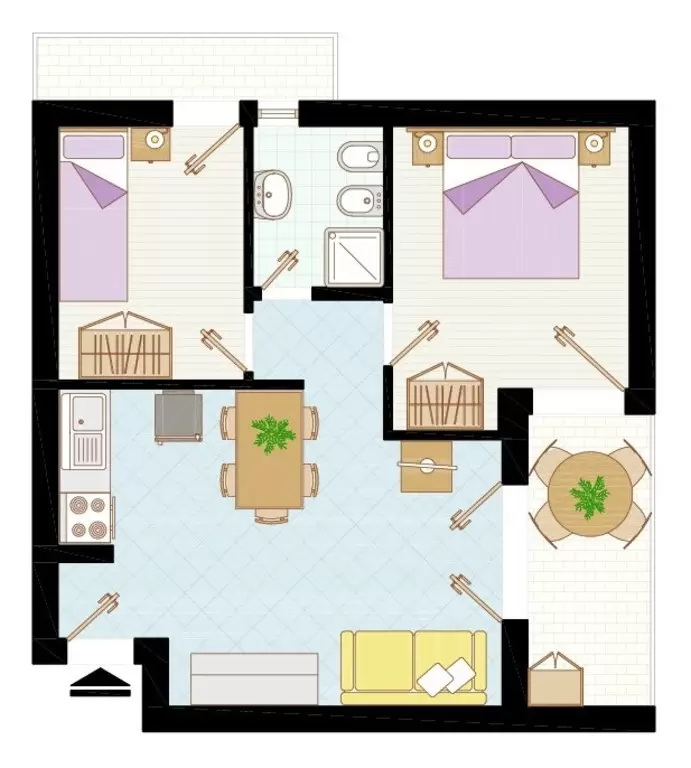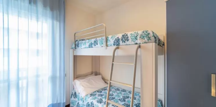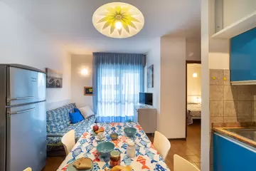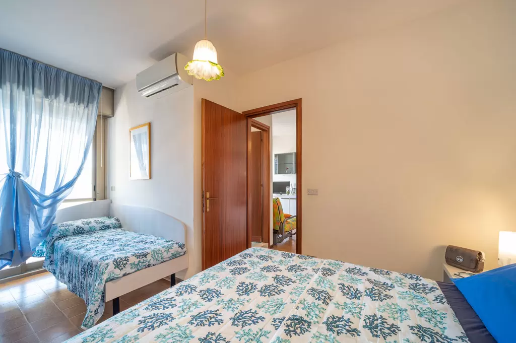 KÉT LÉGTERŰ 3-5 fő részére: nappali kétszemélyes kanapéval, háromágyas szoba, főzőfülke, fürdőszoba, tágas fedett erkély. Air-conditioning.