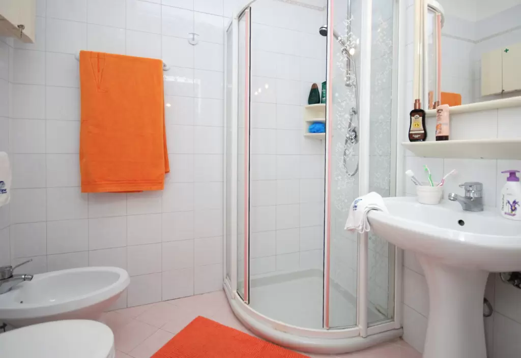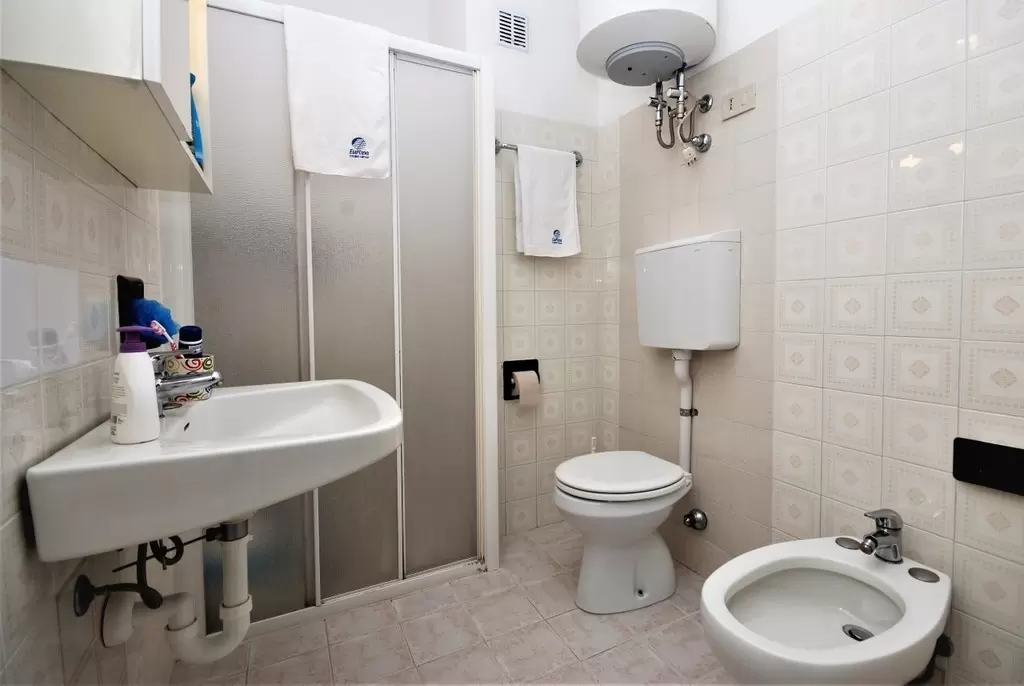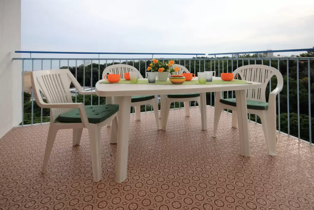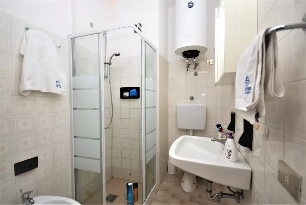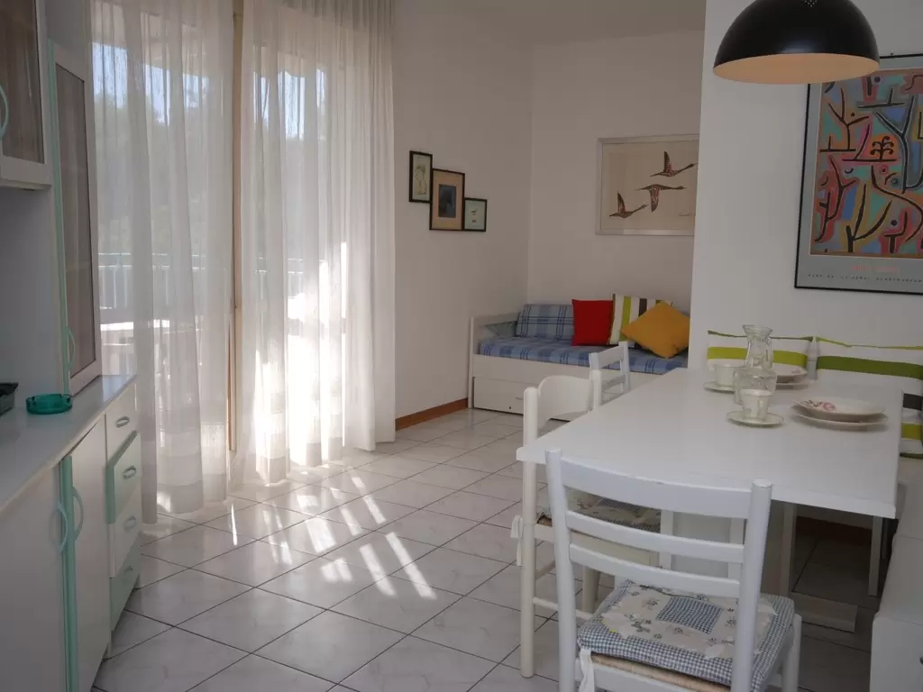 TWO-ROOM-APARTMENT for 2-5 persons composed of: living-room with double divan-bed and single pull-out bed or divan for 1 person and bunk bed, 1 bedroom with double bed, kitchen corner, bathroom, balcony.