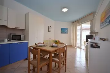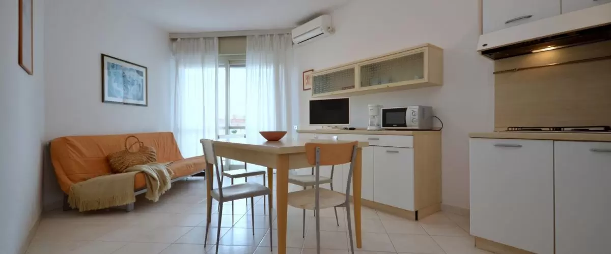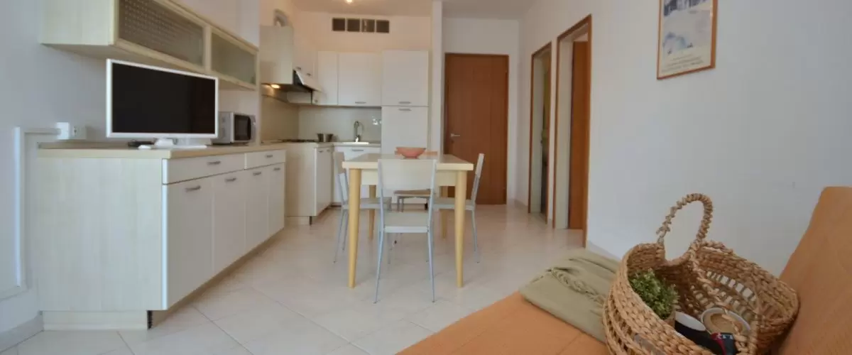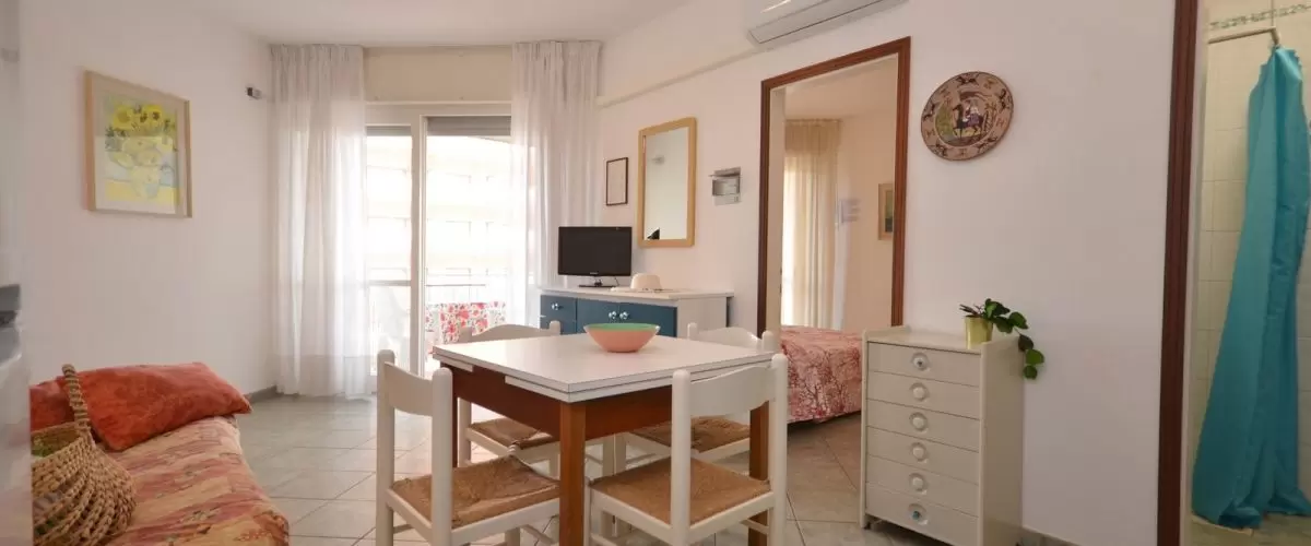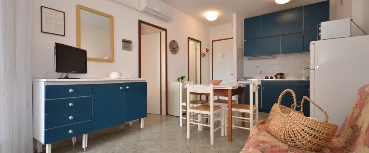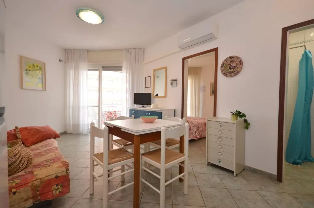 EGYLÉGTERŰ 3 fő részére: nappali kétszemélyes kanapéval és 1 egyszemélyes kanapéval, vagy 1 kinyitható ággyal, főzősarok, fürdőszoba, terasz. Légkondicionálás.