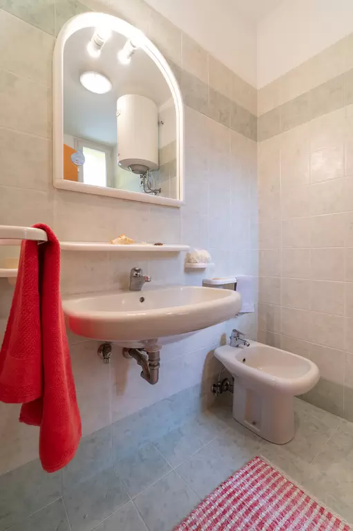 HÁROM LÉGTERŰ első vagy második emeleti 4-6 fő részére: nappali kétszemélyes kanapéval, szoba franciaággyal, kétágyas szoba, főzősarok, fürdőszoba, fedett terasz. Mosógép. Air-conditioning.