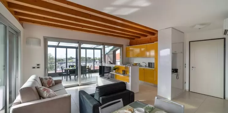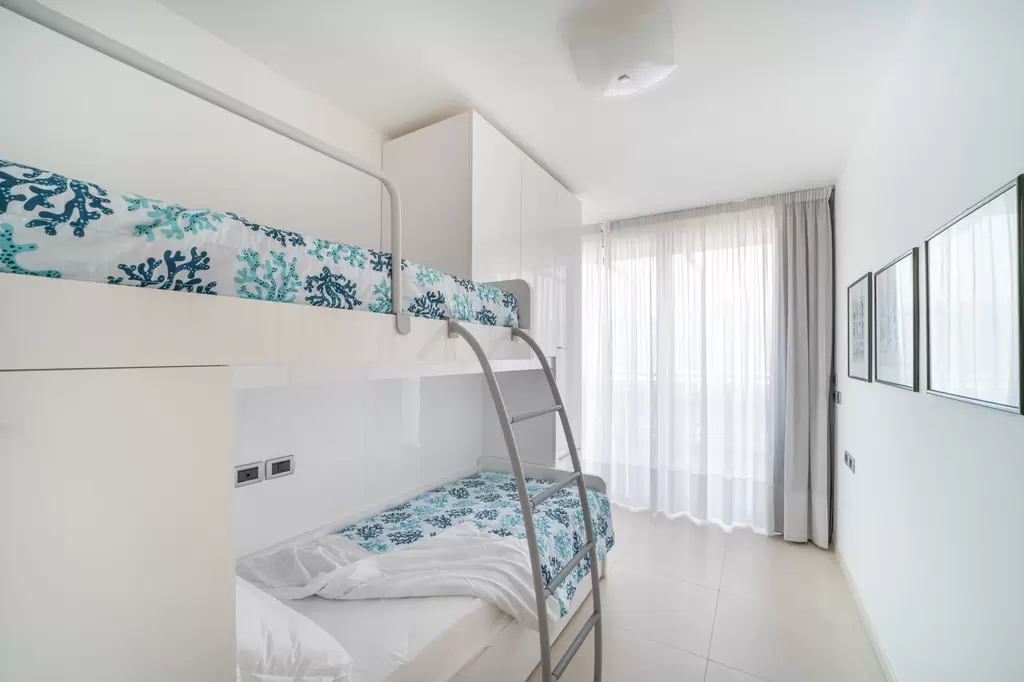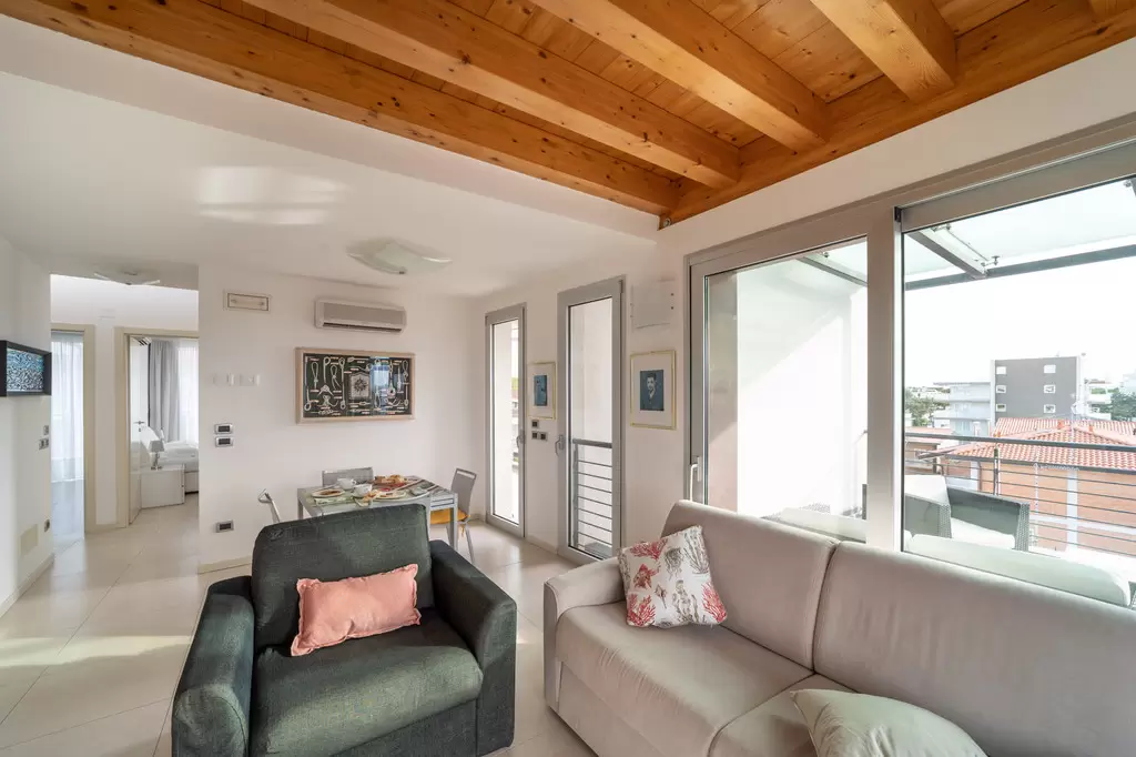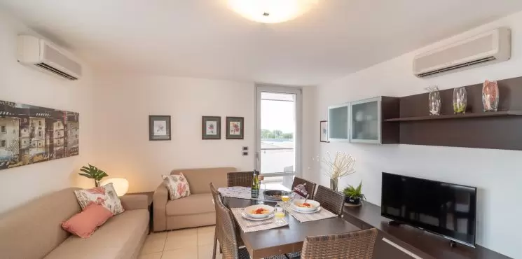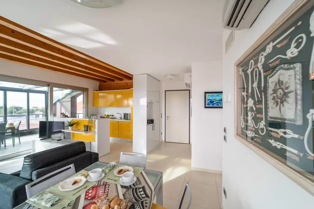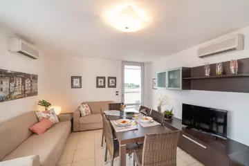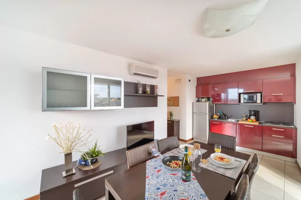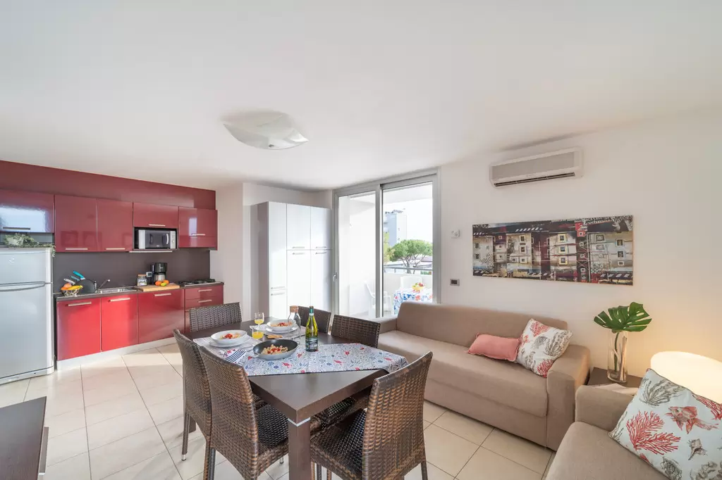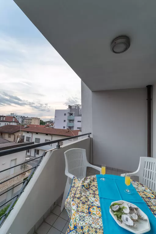 Minden hely, amire szükséged vanNyaralj, mint otthon... vagy még jobban, köszönhetően a mellékelt szolgáltatásoknak, mint például a mosoda, vagy a foglalt parkolóhely a garázsban. Az épület nemrégiben épült, melyben négy emeleten, összesen kilenc lakás található. A kb. 700 méterre lévő strand strand 10 perc sétával, vagy kerékpárral 5 perc alatt elérhető. A rezidencia lifttel és kaputelefonnal felszerelt. Minden apartman modern berendezésű, mosógéppel, mosogatógéppel, műholdas TV-vel, mikrohullámú sütővel, légkondicionálóval, széffel és wifivel felszerelve.