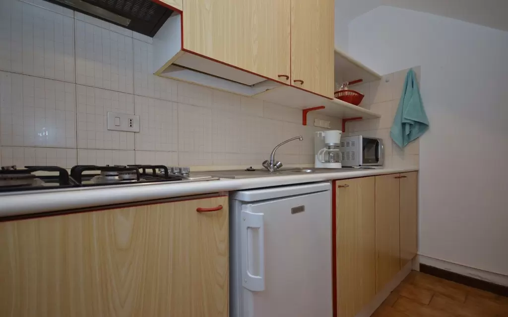 KÉT LÉGTERŰ 3-5 fő részére 2 szinten; Földszinten: nappali kétszemélyes kanapéval, főzősarok, terasz. Első emeleten: 1 szoba franciaággyal és 1 egyszemélyes ággyal, fürdőszoba, terasz.