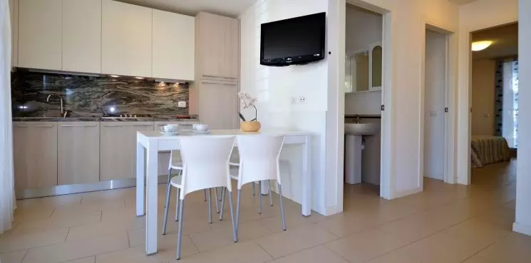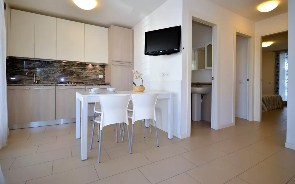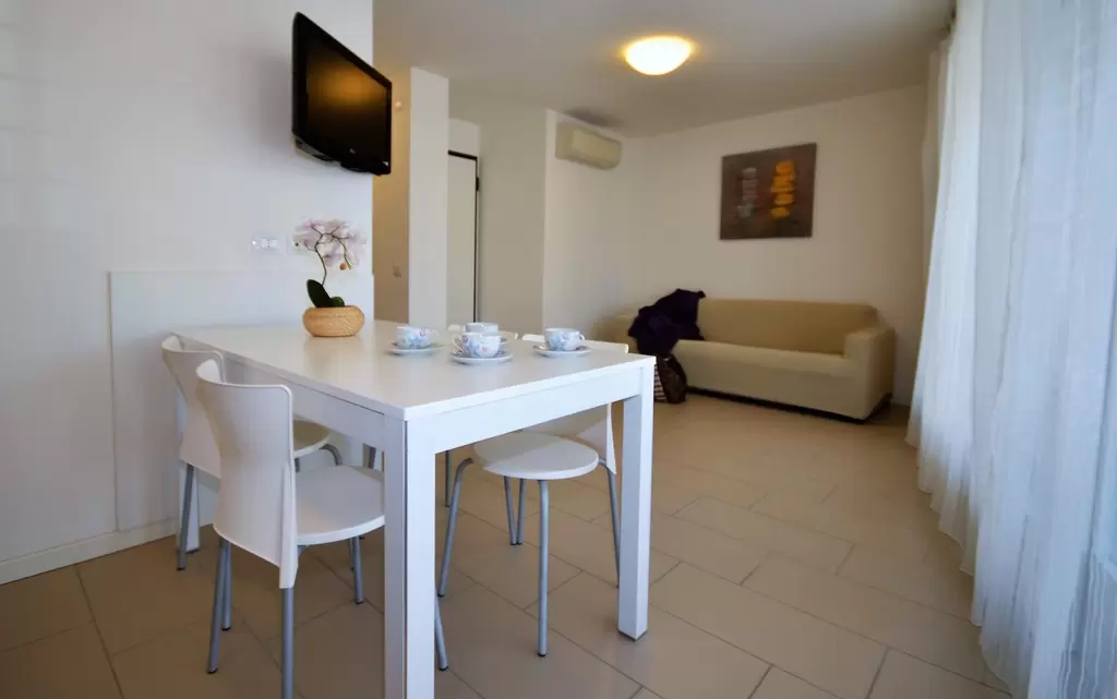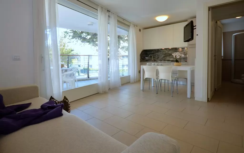 Új és elegáns épület kb. 400 méterre a strandtól és egy rövid sétára Lignano Sabbiadoro sétálóutcájától. 9 apartmanból áll, 10 emeleten, lifttel és 1 parkolóhellyel apartmanonként. Minden apartman nagy erkéllyel rendelkezik és a 4. emeletről csodálatos kilátás nyílik a lagúnára. A berendezés modern, minden apartman műholdas TV-vel, légkondicionálóval, mosogatógéppel, mosógéppel, mikrohullámú sütővel felszerelt.