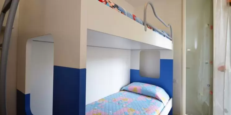 HÁROM LÉGTERŰ 4-6 fő részére: nappali kétszemélyes kanapéval, 1 szoba franciaággyal, 1 szoba emeletes ággyal, konyhasarok, mosó / mosogatógép, fürdőszoba, erkély.